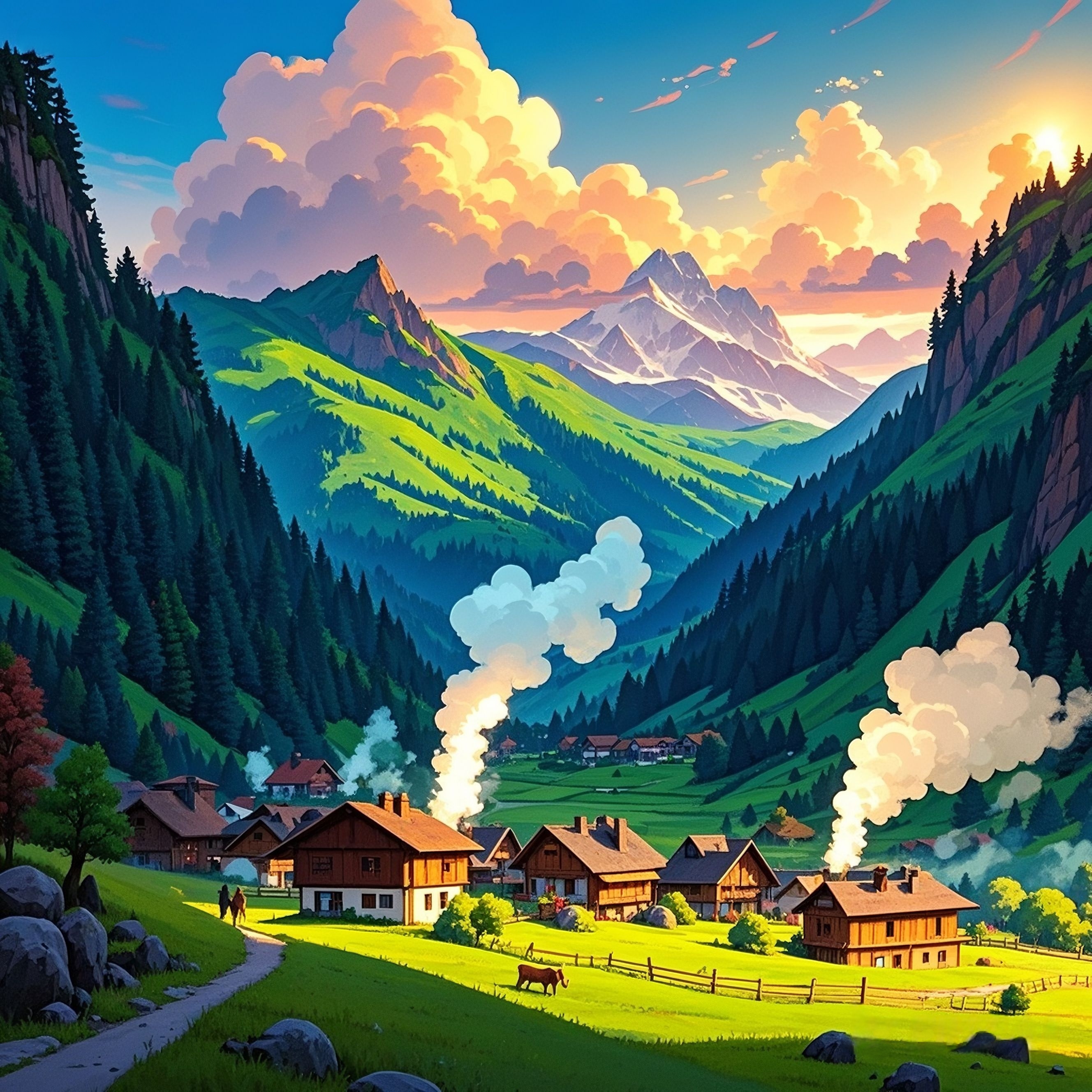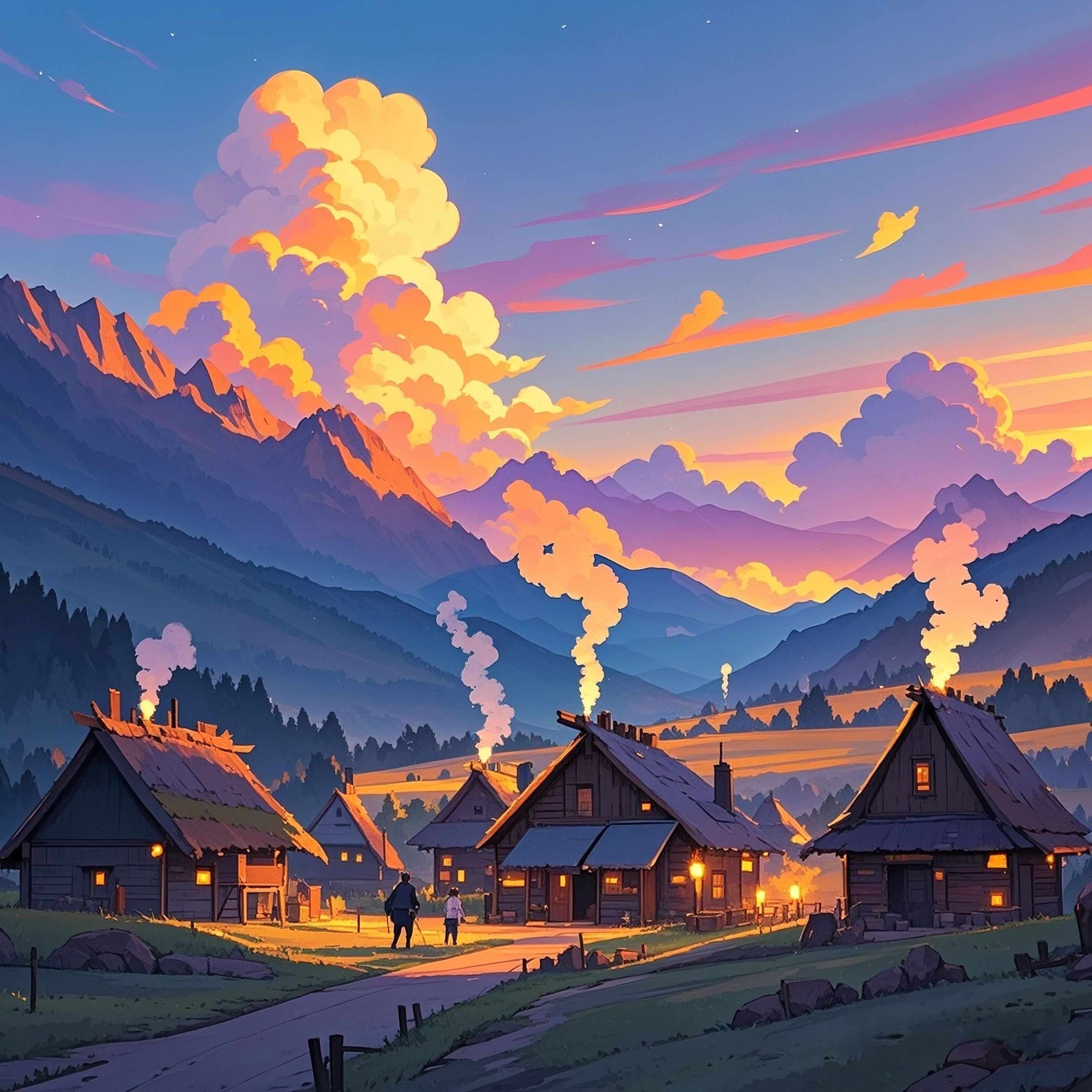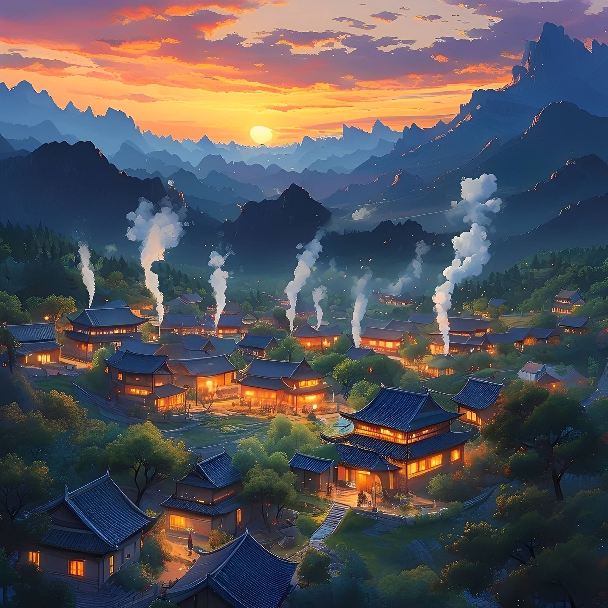暮色垂落时,炊烟从黛青山影间浮起,如大地轻呼的气息。