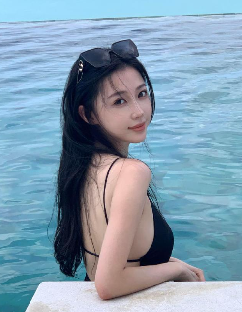 潘玮柏老婆晒泳装照,穿黑色连身泳装凸现白皙皮肤,34岁生娃后的状态真好