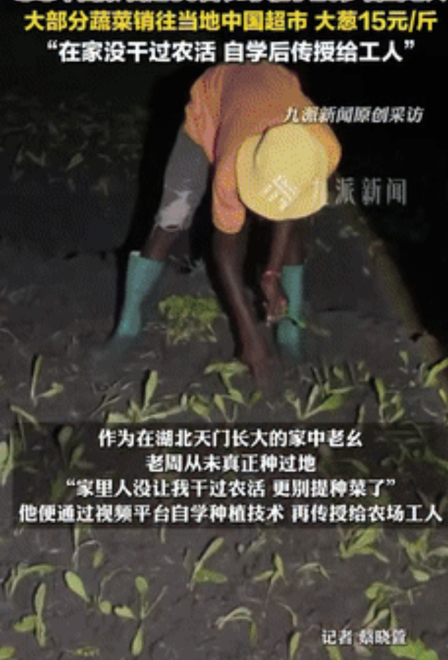 实在馋得受不了,这个在家连锄头都没摸过的“城里娃”,硬是在非洲包下30亩荒地,没学过种菜他就对着手机短视频学,白天看视频记笔记,晚上带着工人在地里实践。
