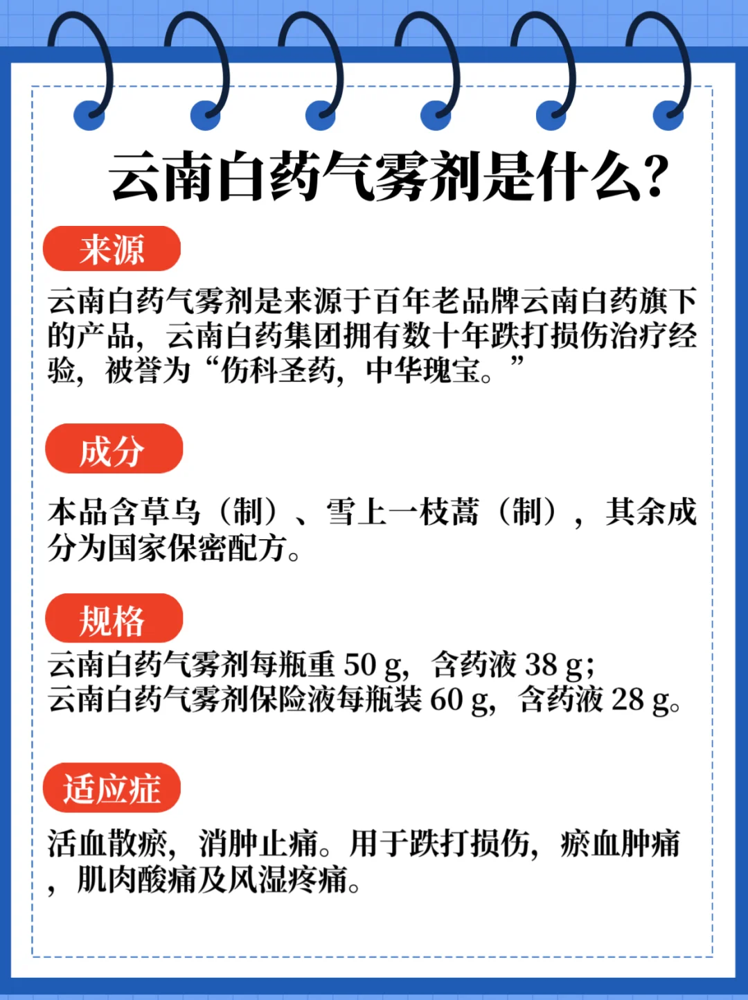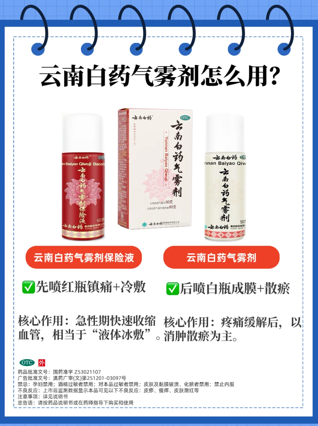 比如云南白药气雾剂,里面是两瓶➡️红+白瓶组合,1+1效果>2,红瓶消肿止痛,白瓶成膜持续释放药效减少二次损伤。