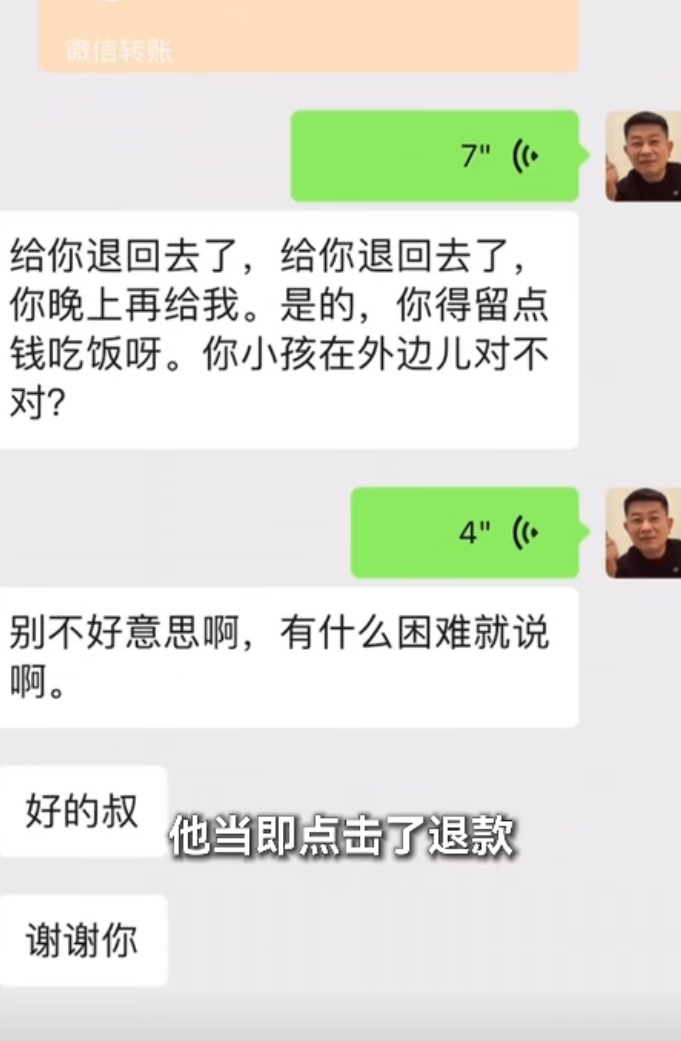 看到女孩这话,他二话不说,把227块钱原路退了回去,紧接着,他电话联系上女孩,告诉她钱不着急,千万别因为房租影响了吃饭这种正常生活。