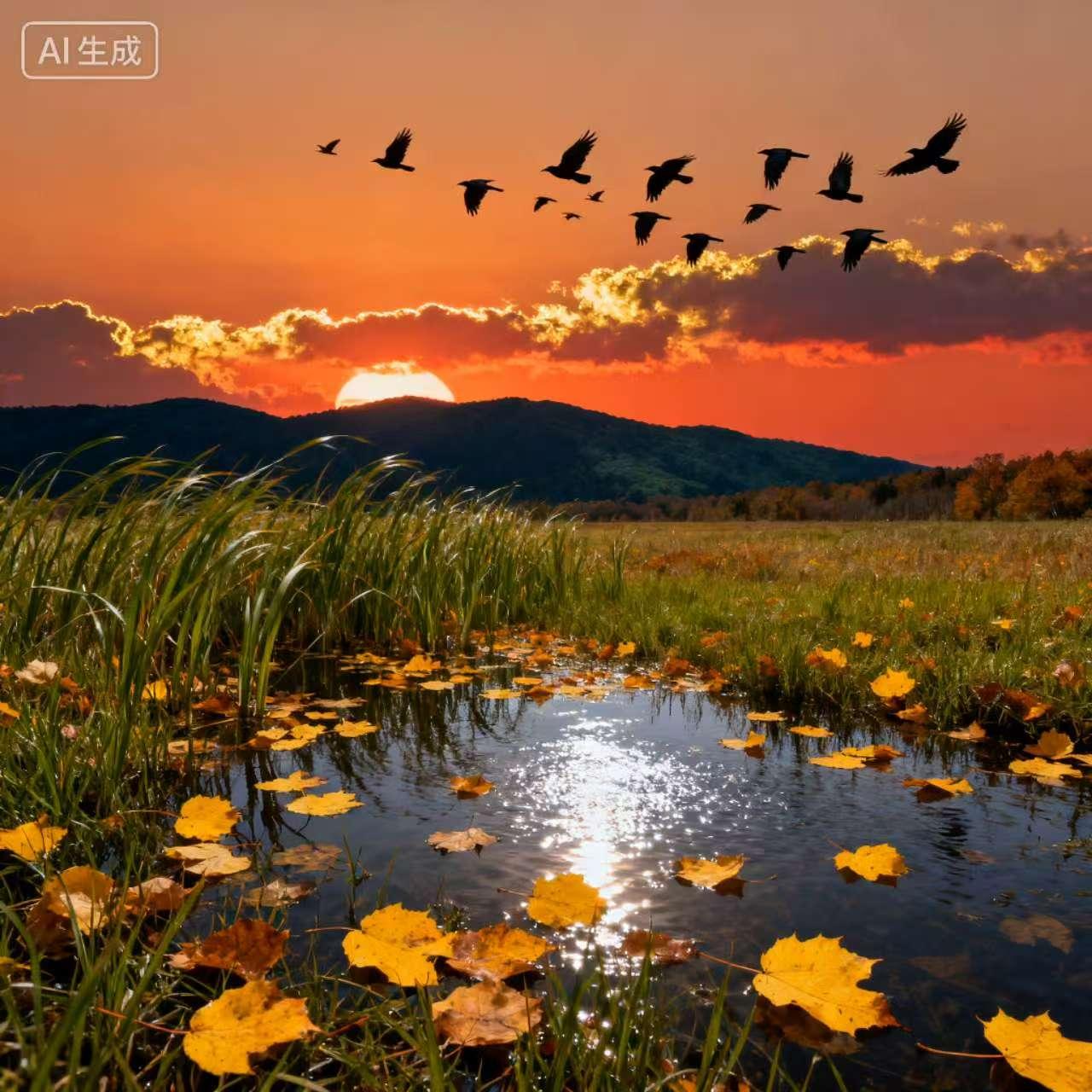 泠泠秋韵 泠泠草随风,瑟瑟叶落黄。 晨光映白露,晚霞衬红光。 远山含黛色,近水泛银芒。 秋意浓如酒,归鸦啼夕阳。 秋天来了,秋天美,美的让人心情复杂,秋天既有美丽的晚霞又有萧瑟的枯黄,真如浓酒一般耐人寻味。