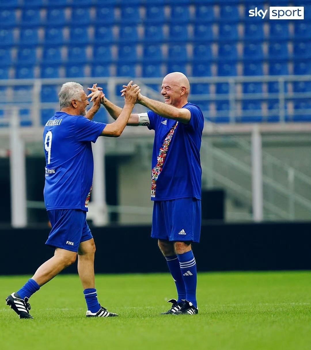 FIFA大战UEFA!足球传奇赛在圣西罗举行 在国家队比赛日期间,国际足联主席因凡蒂诺和欧足联主席切费林共同在圣西罗球场举办了一个场传奇赛。没有对外售票,没有观众,纯娱乐的比赛。