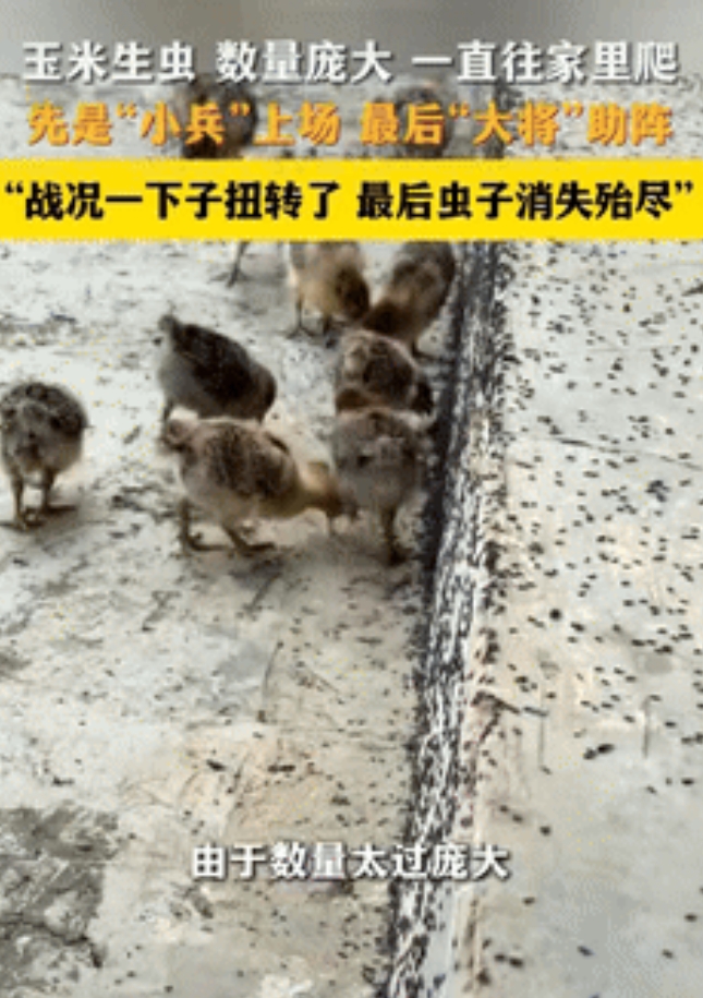 “怎么能这么聪明!”贵州,男子家的玉米生了虫子,眼看密密麻麻爬的哪里都是,他灵机一动,竟然将家里养的29只鸡放了出来,果然这些“将士”战斗勇猛,没多久将虫子消灭的一干二净,然而有网友却绷不住了:就怕它边吃边拉就麻烦了! 据南昌西湖发布9月10日的报道,男子的玉米本来收成不错,结果堆在粮仓里没几天就生了虫,密密麻麻的肉虫子把玉米粒啃得都是窟窿眼,家人十分心疼。