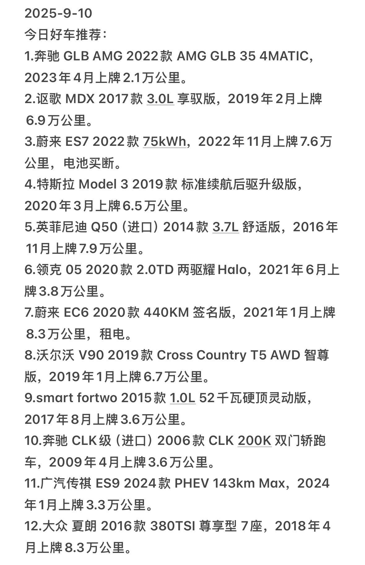 9月10日在售精品自营车推荐。兄弟们对不住了,昨晚视频没发成功,今早补...