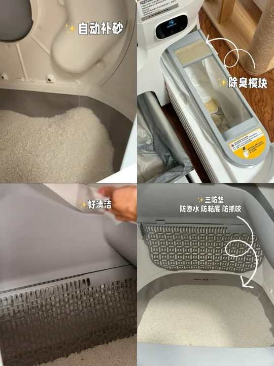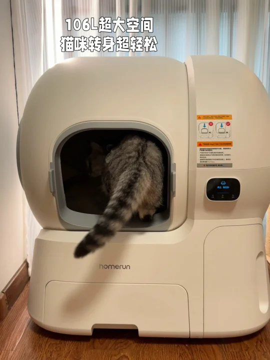 我家霍曼这款还能自动添砂,出去玩一周回来,猫砂还在max线,完全不用担心粘底,这个设计全网都少见。而且它砂底中间浅、四周深,特别符合猫咪如厕习惯。考虑到后面想养二胎,选它也是一步到位,空间够大,能同时容纳两只小猫,大体型猫咪在里面也能轻松转身。