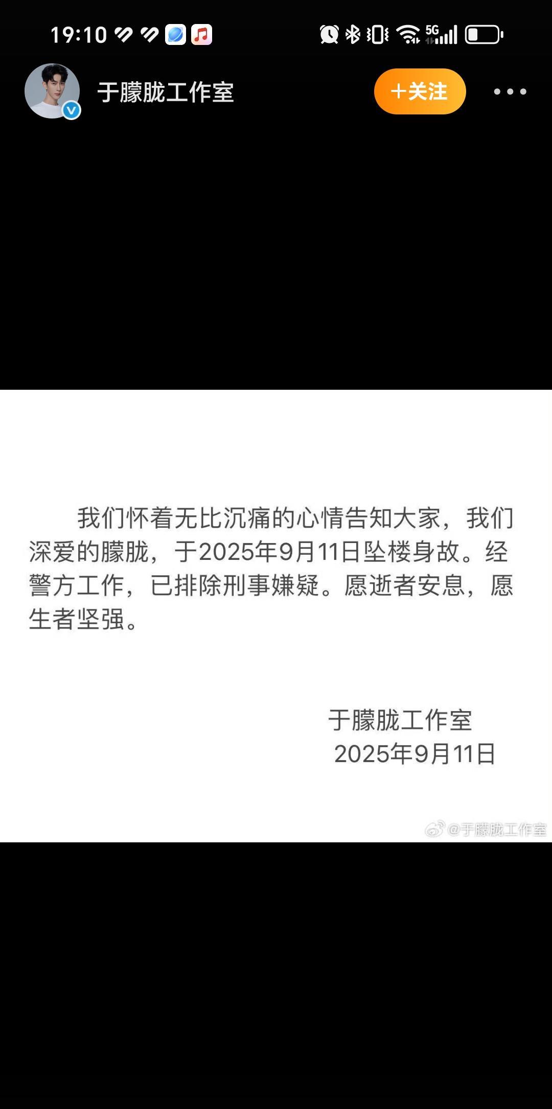 9月11日于朦胧一路走好,看到工作室的讣告发文真的很伤心,虽然不是粉丝但是他演的好几部电视剧我都看过,颜值很高是很有辨识度的演员 ,真的很有实力的演员,最后这样的离开世界很遗憾。 不知道父母是不是已经到来陪伴他了吗?普通的家庭漂亮的男孩,娱乐圈的大染缸真的不适合这样的大男孩。可惜了还没有结婚,就这样走了,父母年龄大了得多伤心。 如果有来世希望他可以做个普普通通的人,然后有个小家庭快乐过一生。这么高的颜值可惜没结婚,没孩子。要是有孩子一定很漂亮。