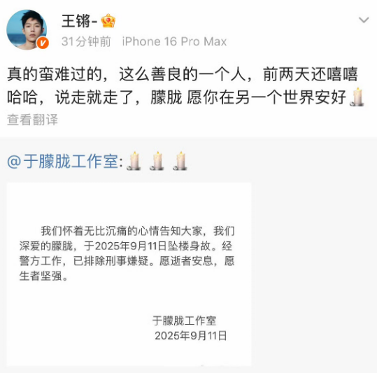 娱乐圈众星发文悼念于朦胧, 大家印象里的于朦胧一直是温暖,阳光,善良的一个人。