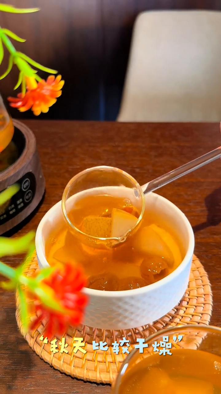 梨煮水是天然的润燥饮,这款梨煮水搭配全家人都爱喝,今天就给家人煮起来。俗话说一梨润三燥,秋天比较干燥,这碗梨子陈皮水可不要错过。 半个梨子切块,放入养生壶,再加桂圆六颗、陈皮三克、枸杞三克、冰糖一块,加入八百毫升清水,大火煮开,再煮二十分钟就可以喝了。 入秋后多给家人喝一喝,喝下去润润的很舒服,你也试试吧。