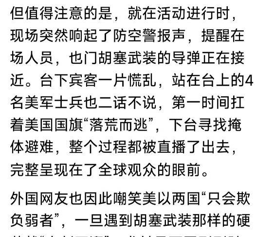 谁想以军轰炸哈恐驻卡塔尔高官,胡塞竟然声援哈恐,对以发射一枚高超音速导弹。虽然被击落,却让以“纪念美独立日249年”活动不欢而散!