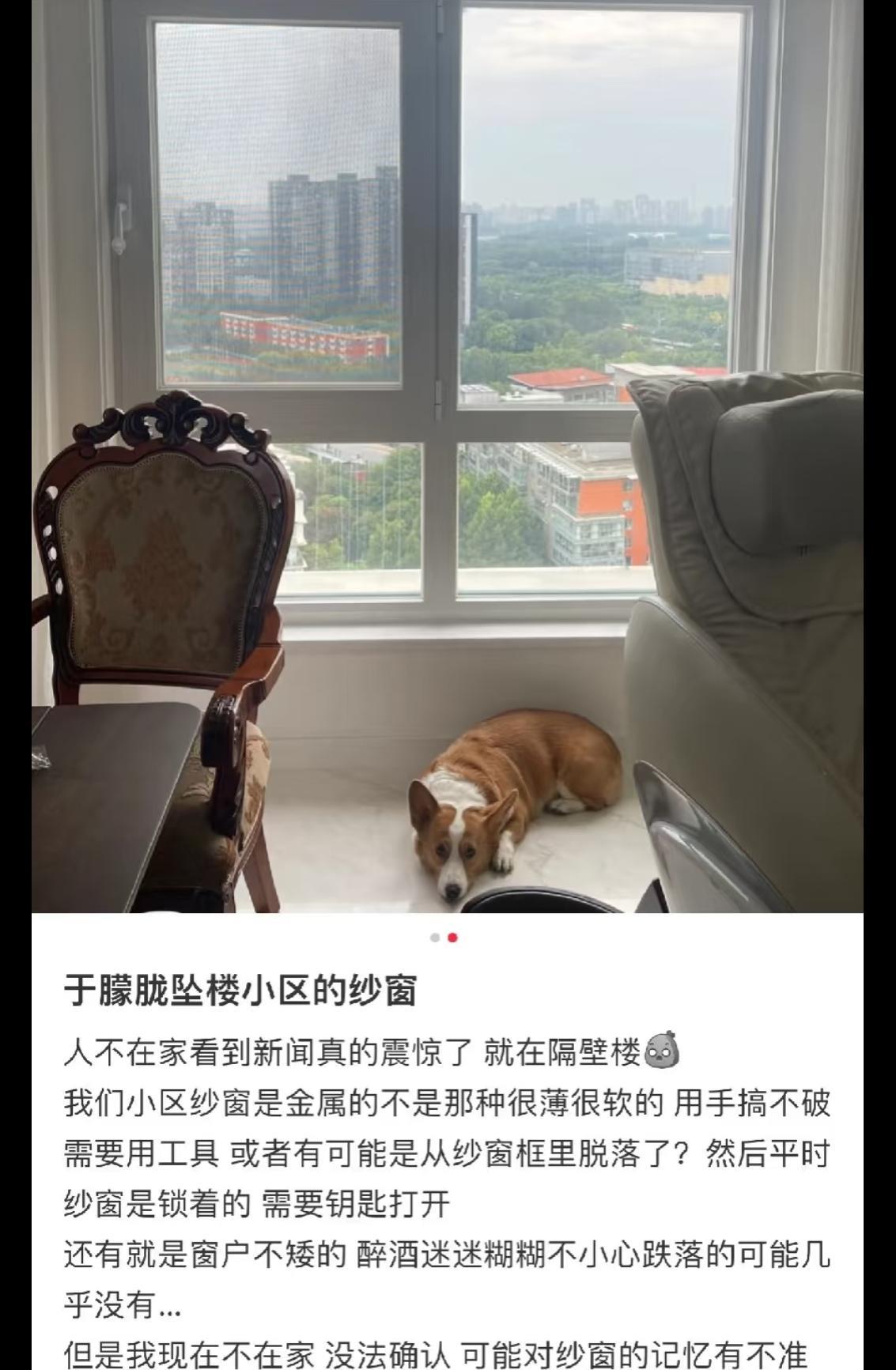 于朦胧那个事情,怕是没有那么简单。 住在这个小区的人说,他们小区的纱窗是铁丝那种,不是很薄很软那种的,不可能轻易徒手把它抠烂的。 而且纱窗需要钥匙才能打开,他没有工具的话,基本不可能打开纱窗。 还有网友像侦探一样,又分析了出事的窗口和周围环境。 他们发现楼下那个玻璃窗户上,有几个抓过得痕迹。 如果一个人直接滑落,是不可能在楼下的玻璃窗外围留下抓痕的,除非有人抓着他的腿,他倒扣着,头部朝下… 毕竟那个楼层也不高,仅仅5层楼而已。 事发后,还有两个疑点。 第一,监控刚好没电了。 第二,不到两个小时,帽子那边已经排除刑事了。 种种迹象表明,这个事情不是zs那么简单。 不知大家有什么看法?#于朦胧#
