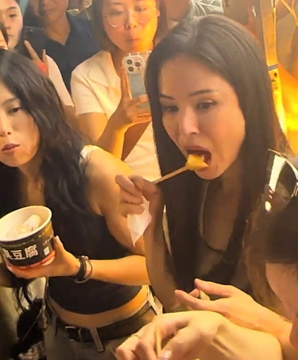 美女博主点了两份,李若彤将装着臭豆腐的餐盒拿在手中,用签子小心翼翼地挑起一块,放进嘴里慢慢品尝。刚开始,她嚼得很慢,脸上仍带着一丝怀疑。