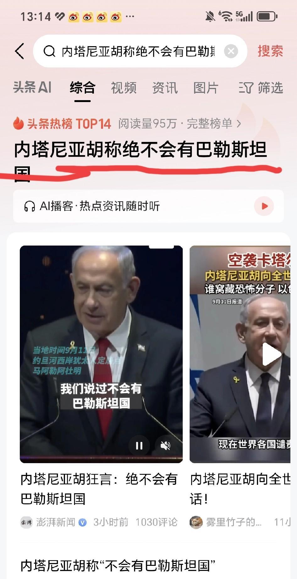 以色列总理内塔尼亚胡,不加掩饰赤裸裸的想着要灭掉巴勒斯坦国的言论,开了一个很恶劣的头。一场现实版的农夫与蛇的故事被内塔尼亚胡表演得淋漓尽致。 生活在加沙地带的巴勒斯坦人,如今是悔掉肠子不该让犹太人居住在他们的身边,年年生活不得安宁,国破而无家可归,教训不可谓不深刻。 内塔尼亚胡现在是不能停战,停下来没好日子过,只能四处点火,打完也门胡塞武装,打伊朗,打完叙利亚的戈兰高地,加沙是天天炸天天轰,不见明显效果,他就攻击卡塔尔的国内目标。 也门,叙利亚,伊朗,加沙地带,内塔尼亚胡是轮流着打,目的很明显吞了整个戈兰高地,灭了巴勒斯坦国,建一个新以色列。