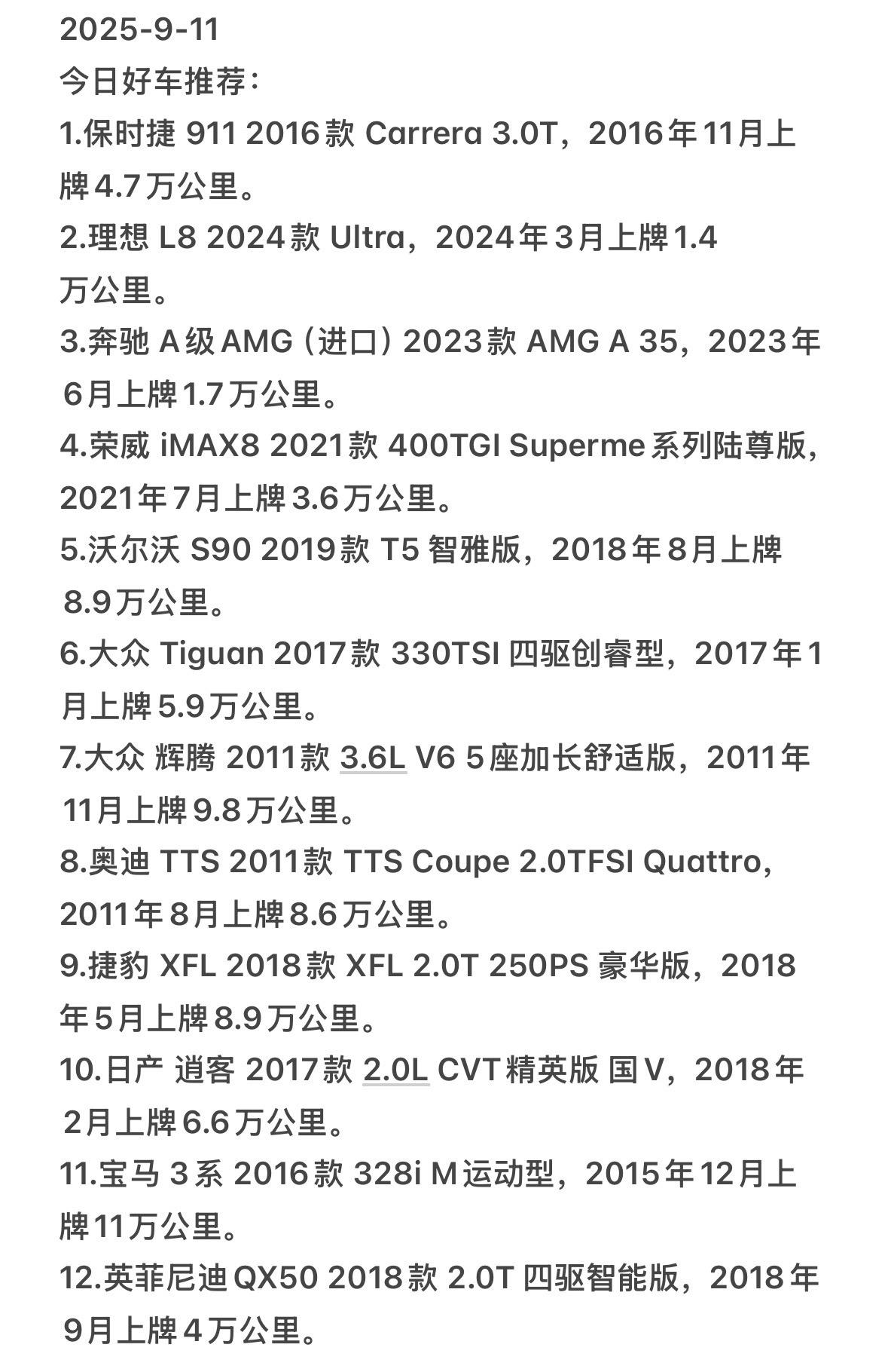 9月10日在售精品自营车推荐。兄弟们对不住了,昨晚视频没发成功,今早补...