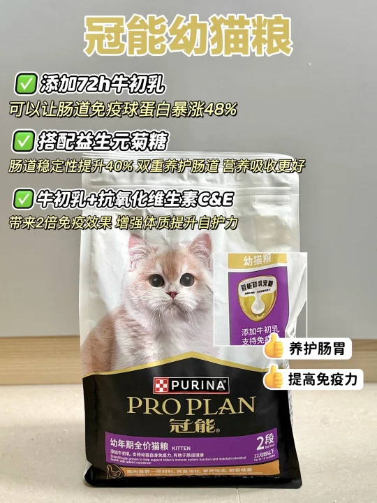 它是🌍☝款添加牛初乳的幼猫粮 牛初乳能激活猫咪肠道免疫 提升肠道免疫球蛋白;搭配了益生元菊糖 能提升肠道菌群稳定性 从根源上解决软便拉稀 不仅胃蛋白酶消化率>90% 全营养消化率可达85% 消化好了吃进去营养才能被吸收