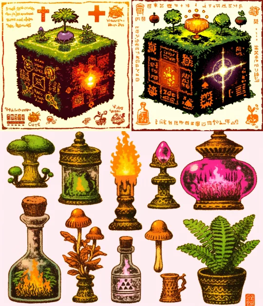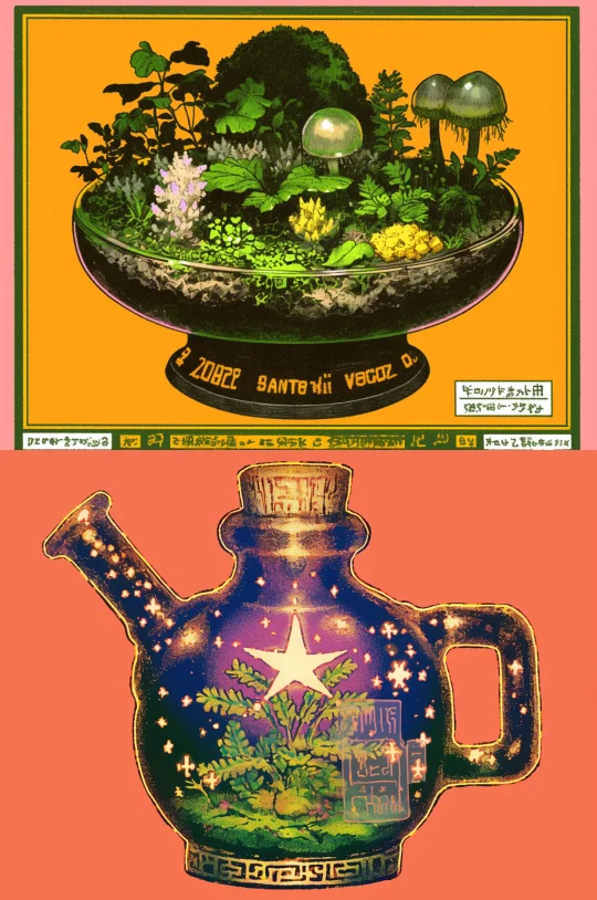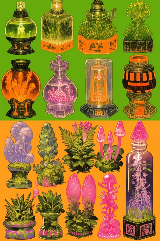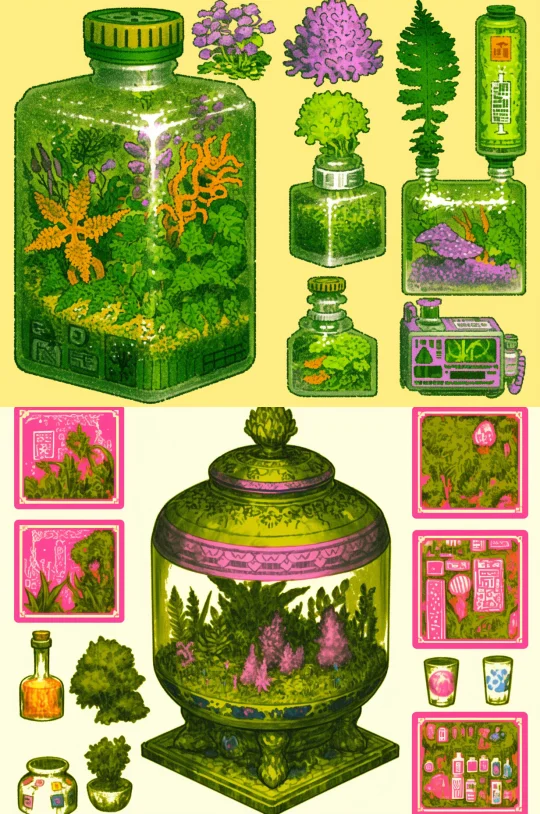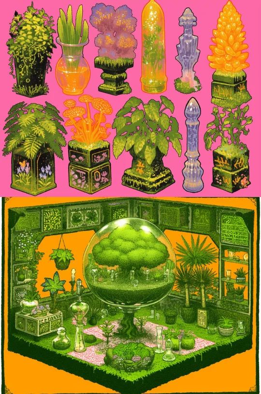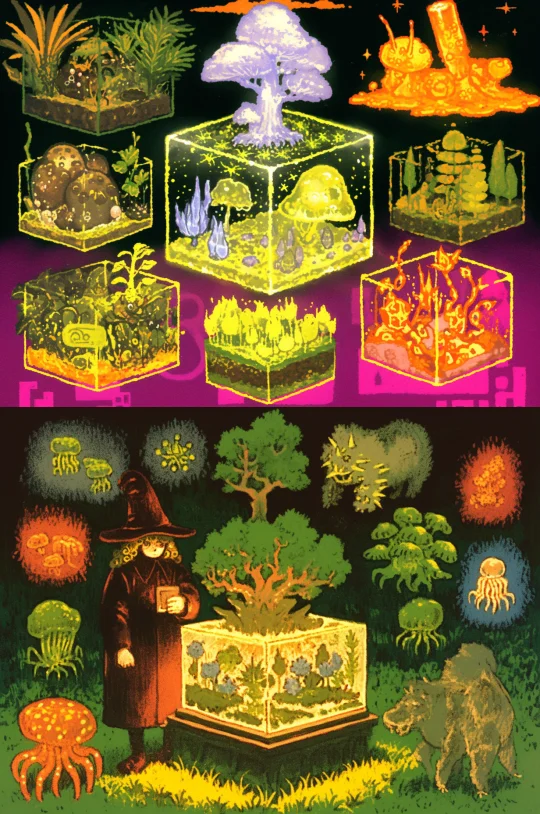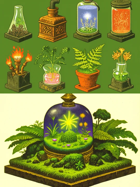 使用空间魔法 将植株周围的异世界环境与容器联通, 实现不可思议的异界盆栽。
