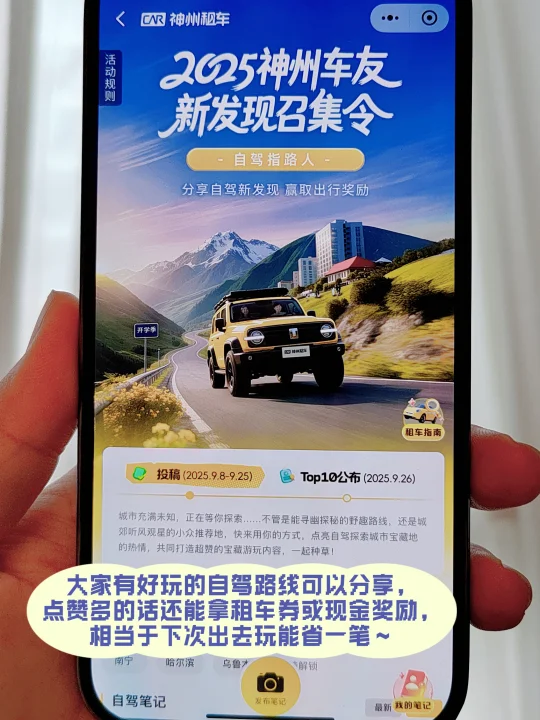 国庆自驾要提前做准备!我发现神州租车出了【2025神州车友新发现召集令】,我已经把这次川西的小众路线整理好,去神州车友会小🍊序投稿啦!大家有好玩的自驾路线也可以去分享,点赞多的话还能拿租车券或现金奖励,相当于下次出去玩能省一笔~