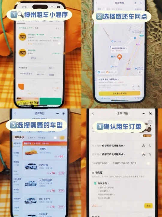 我们这次自驾车是提前在神州租车APP(或小程序)订的,落地成都天府机场直接取车,流程简单方便,收费是全国统一的,像我们这种学生党完全不用担心被坑,安全感拉满~因为要走川西,特意选了SUV,4个朋友坐进去妥妥的,一路上看到好看的风景就停,路线时间全凭心情改,这种自由感真的比跟团舒服一百倍!