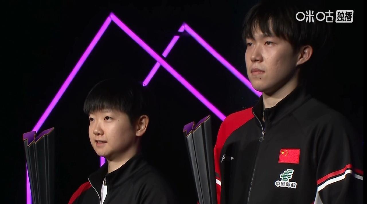2025年WTT澳门冠军赛颁奖礼上,王楚钦、孙颖莎分获男女单冠军,两人的颁奖互动