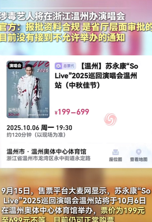 浙江温州的朋友,你买票了吗?曾经的吸毒艺人苏永康,10初温州演唱会遭到了不少人抵制,可有人称,票依然在售。