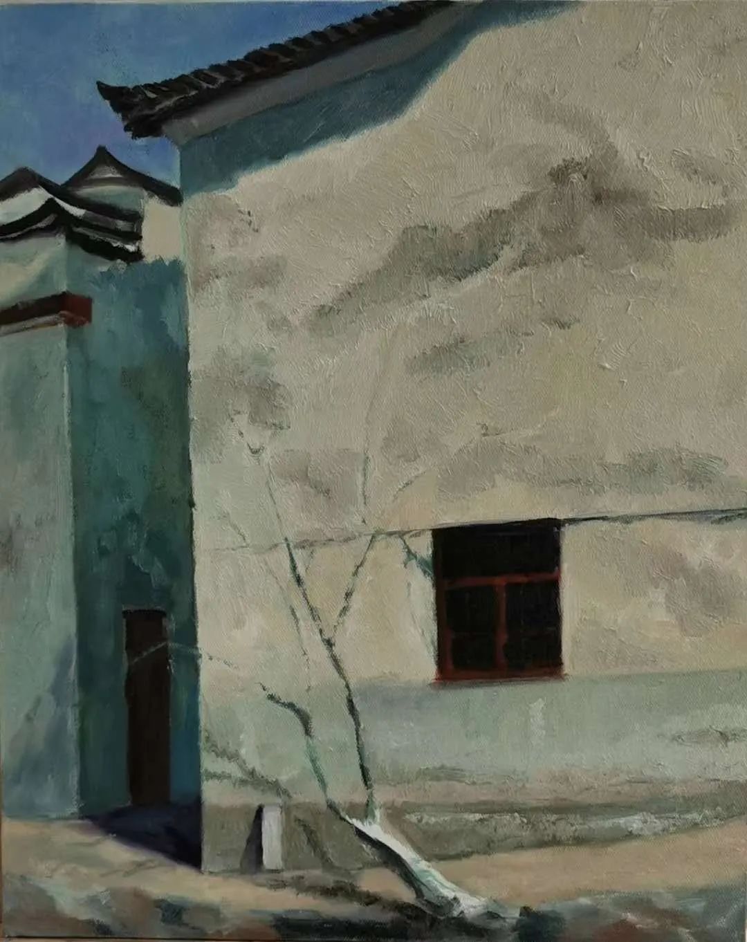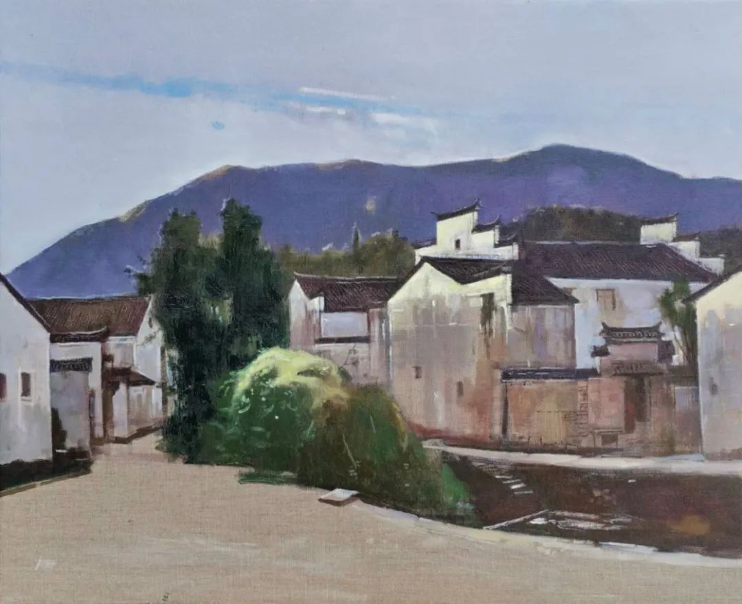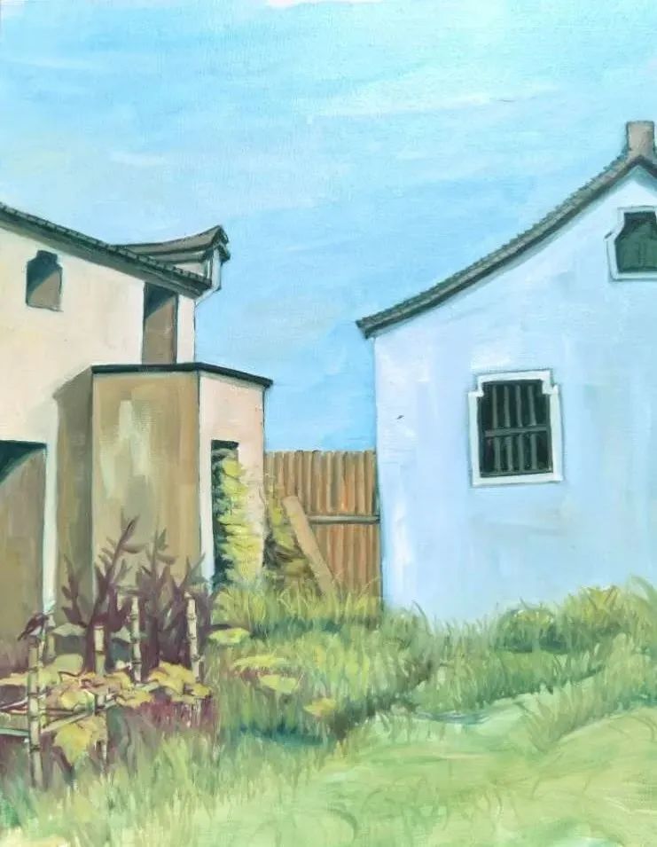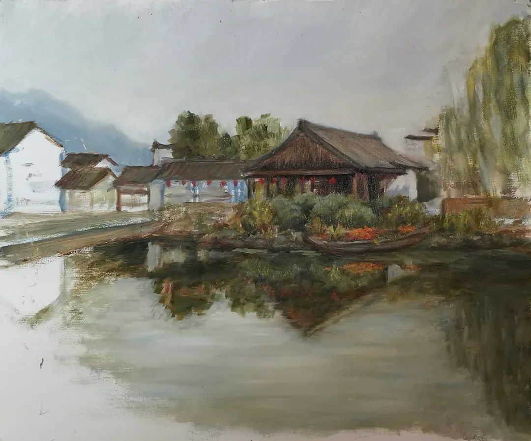 画我所想,画我所感!古镇的几天写生我好像找到一点感觉了。之前因工作原因,有15年没画过画了,以至于怎么画树都忘了……导师陈浩很耐心地跟我讲解了树的画法,不同笔法,我才知道原来油画还可以这样画!