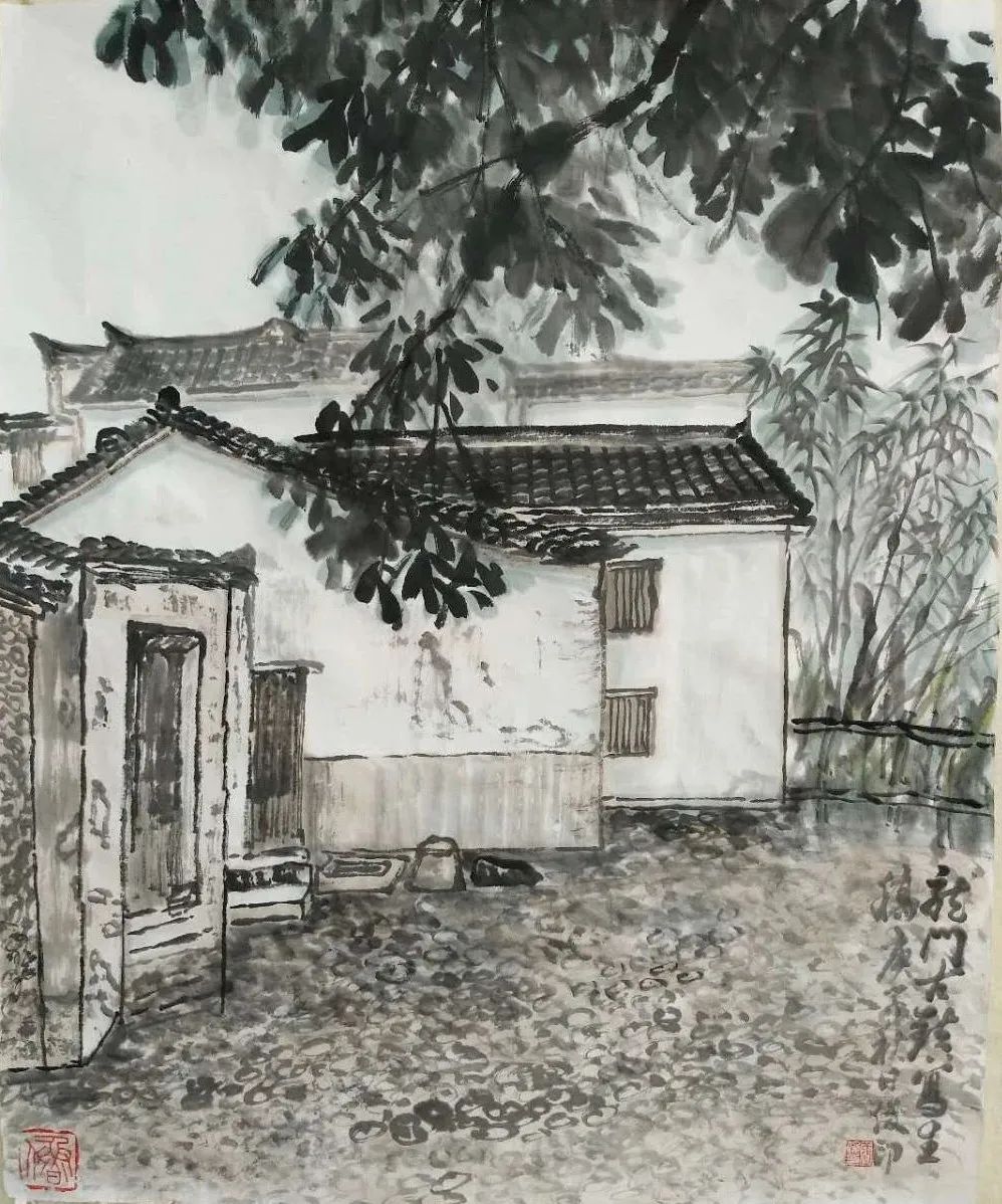 这次写生很不一样。龙门古镇有原始风貌,保护得不错,老房子的这种历史沧桑感能激发我表达的欲望。这些古老的建筑,错落有致,就像自然界长出的树木,天然的,完全不同于现代建筑的统一规划,我们可以一边游玩观赏,一边画画,很开心。