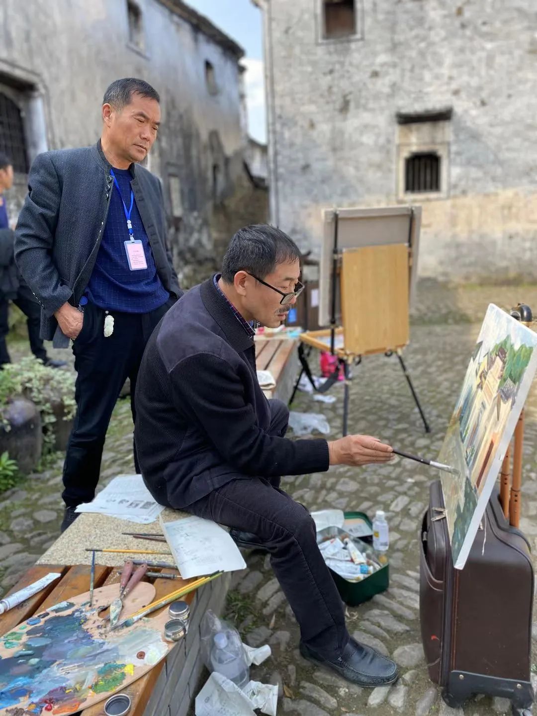 为期五天的写生活动中,写生团 导师 陈浩、团长刘玉国全程一一指导和示范, 来自全国各地的画友,如河南郑州的王红英、黑龙江的王延峰、江苏南通的宣海峰、浙江宁波的张俊印等,纷纷表示时间短暂却收获颇丰。尤其是在古镇感受了不一样的油画与国画的融合、碰撞,艺术跨界”很精彩!