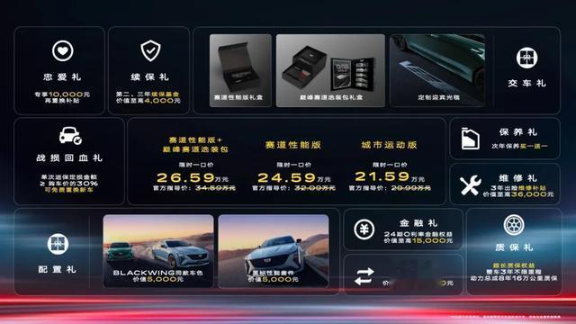 凯迪拉克用十重豪礼为热血兜底:BLACKWING同款车漆色如赛道疾风般耀眼;战损回血礼承诺单次定损超30%即可免费置换新车;8年或16万公里动力总成质保更让每一次地板油都肆无忌惮。