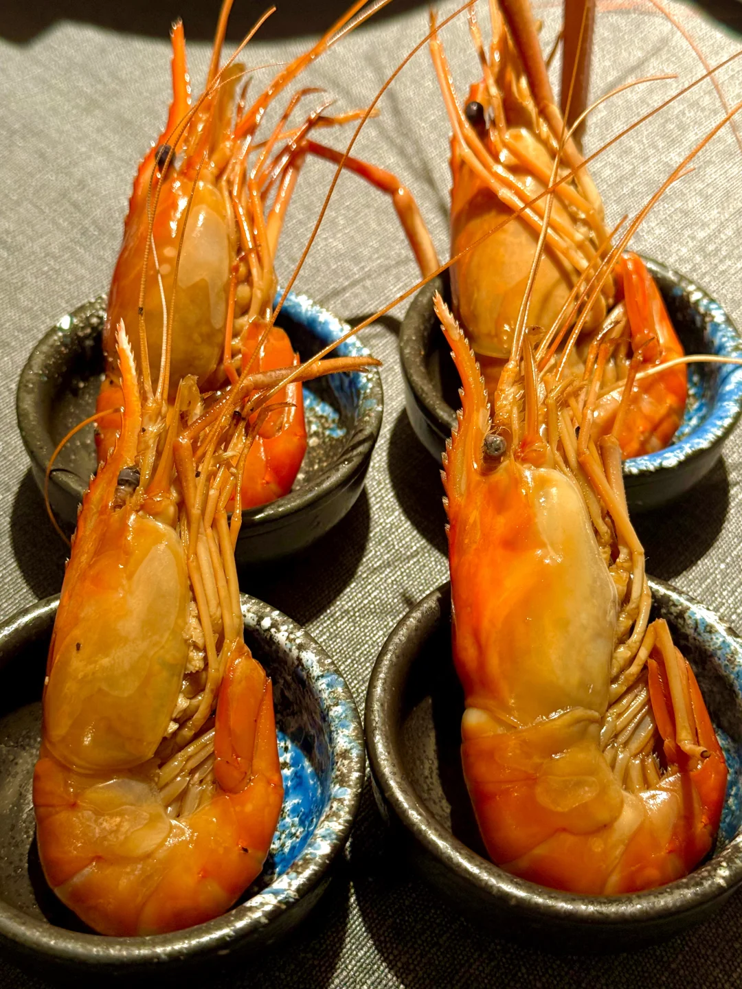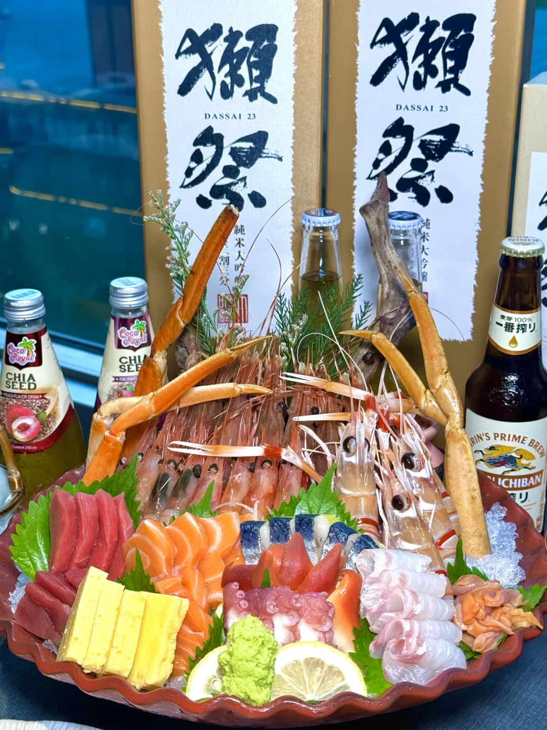牡丹虾刺身肉质紧实、厚切三文鱼、金枪鱼、蟹腿