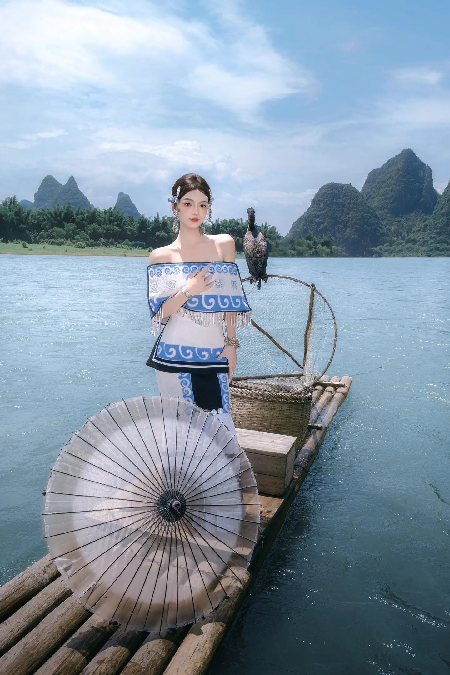 拍完不后悔的民族风!漓江竹筏苗疆少女