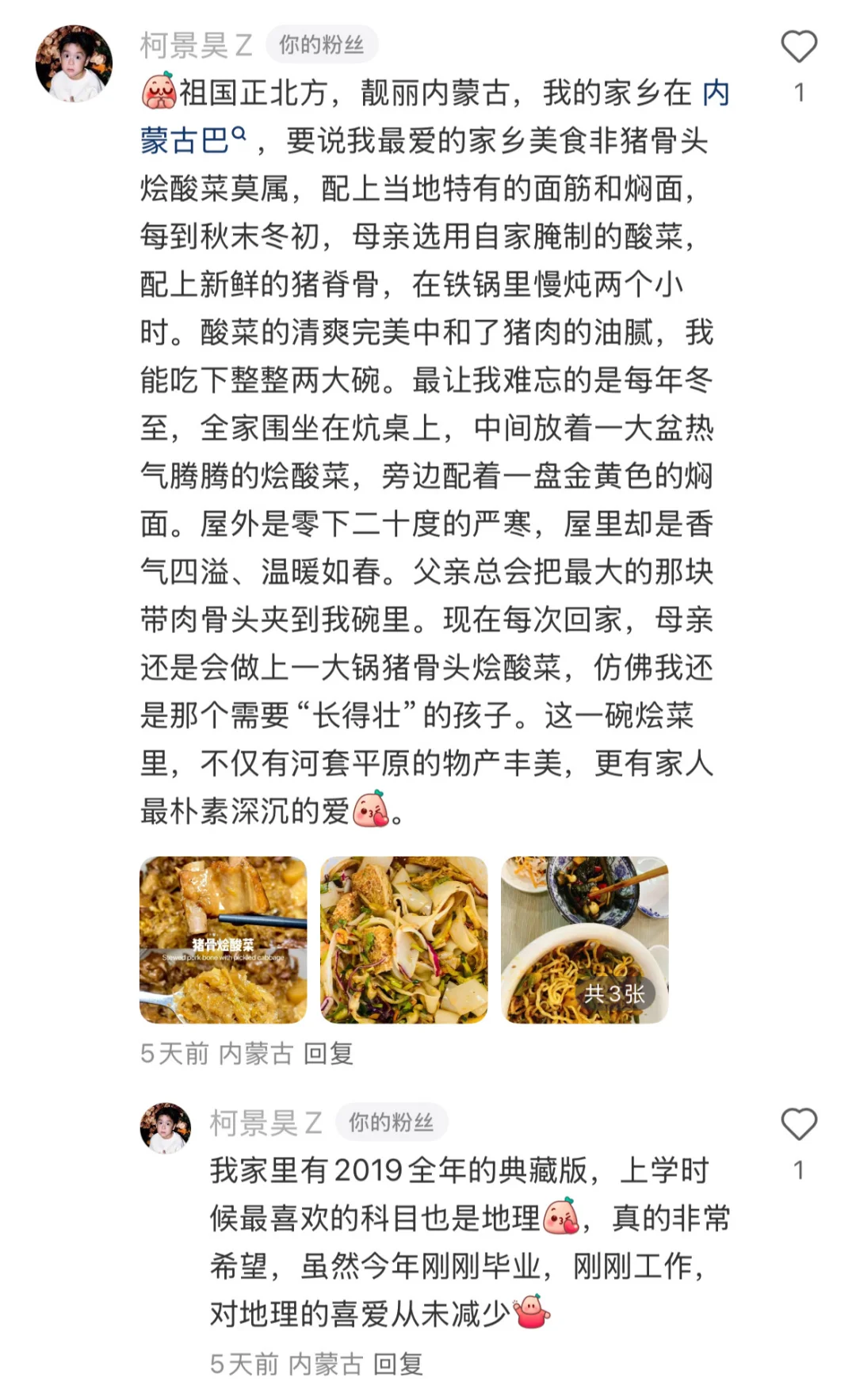 谢谢所有参与活动的朋友分享自己家乡的美食,恭喜这六位粉丝朋友获得签名版《中国国家地理》25年9月杂志一本。