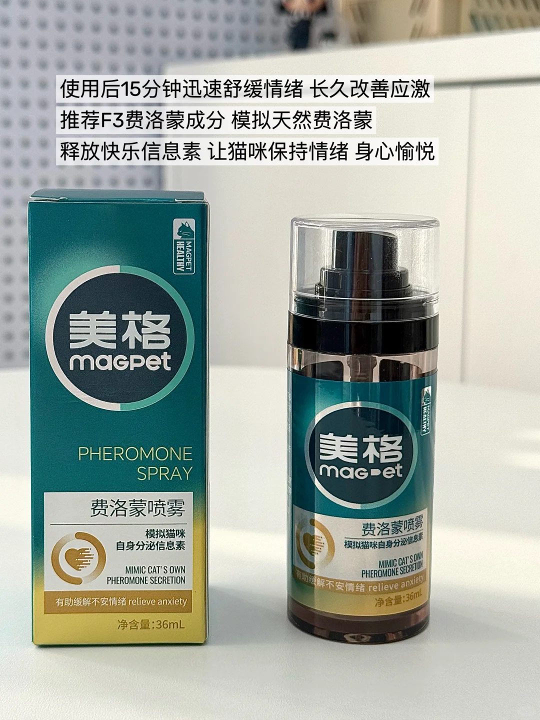 这款MAG费洛蒙喷雾添加F3费洛蒙成分 模拟天然费洛蒙 释放快乐信息素 使用后15分钟迅速舒缓情绪 改善应激状态 让猫咪保持情绪 身心愉悦