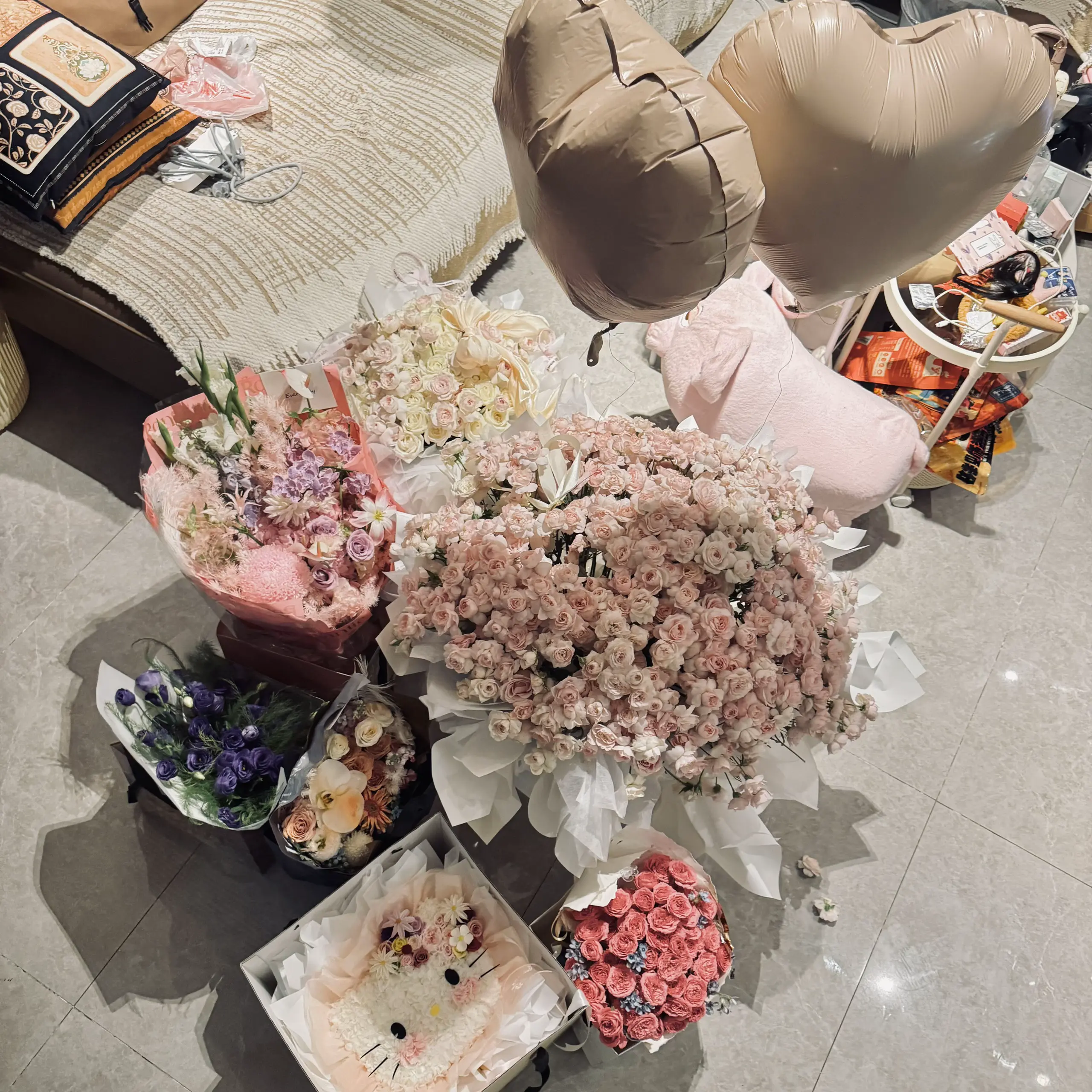 粉色连衣裙,优雅气质,镜前自拍,美不胜收!