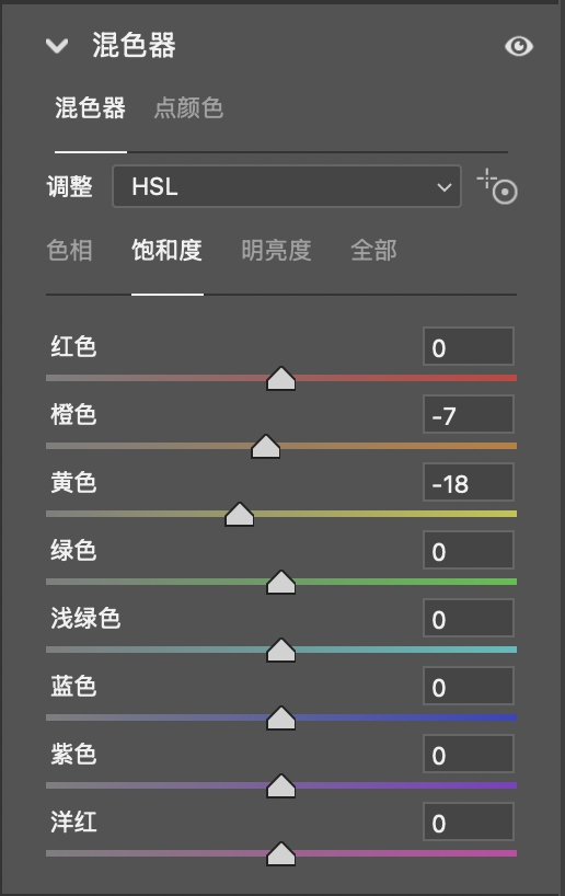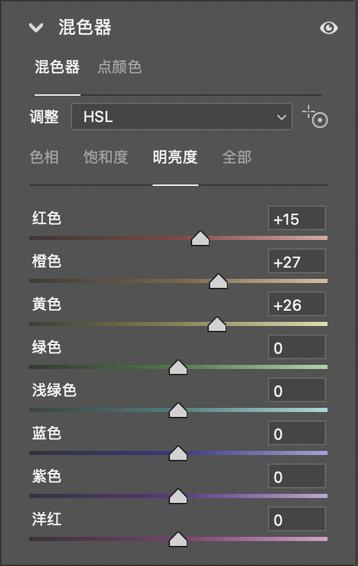减黄减橙饱和度(p10),增加黄橙红明度(p11)让皮肤去黄显得更加亮白。