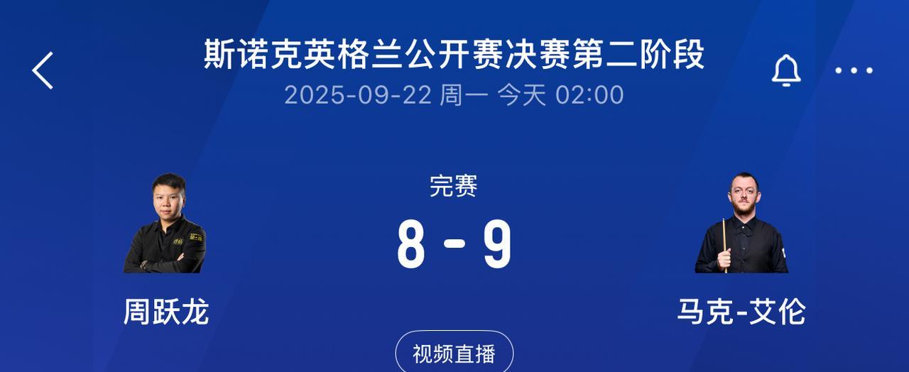 少了一鞭,少了历史上第一个冠军头衔![笑哭][笑哭][笑哭]尽管没有出现我所祈祷的一波“七连鞭”!但“五连鞭”也足以令人惊叹!就暂先留下一丝丝遗憾吧! 斯诺克英格兰公开赛决赛第一阶段比赛结束后,世界排名第31位的中国“独苗”球手周跃龙与世界排名第8位的爱尔兰名局分打成了2:6,我睡前曾祈祷醒来后在第二阶段可以看到周的一波“七连鞭”逆袭,显然这终究是个不切实际的梦! 第二阶段一开始,双方互胜一局,比分变成了3:7,但此后周跃龙屏气凝神,一口气打出了“五连鞭”成功以8:7实现了反超,距离冠军宝座仅差“一步之遥”!但可惜此时体力不支、注意力有所分散,随后又被马克·艾伦连下两城,最终以8:9丢了冠军!