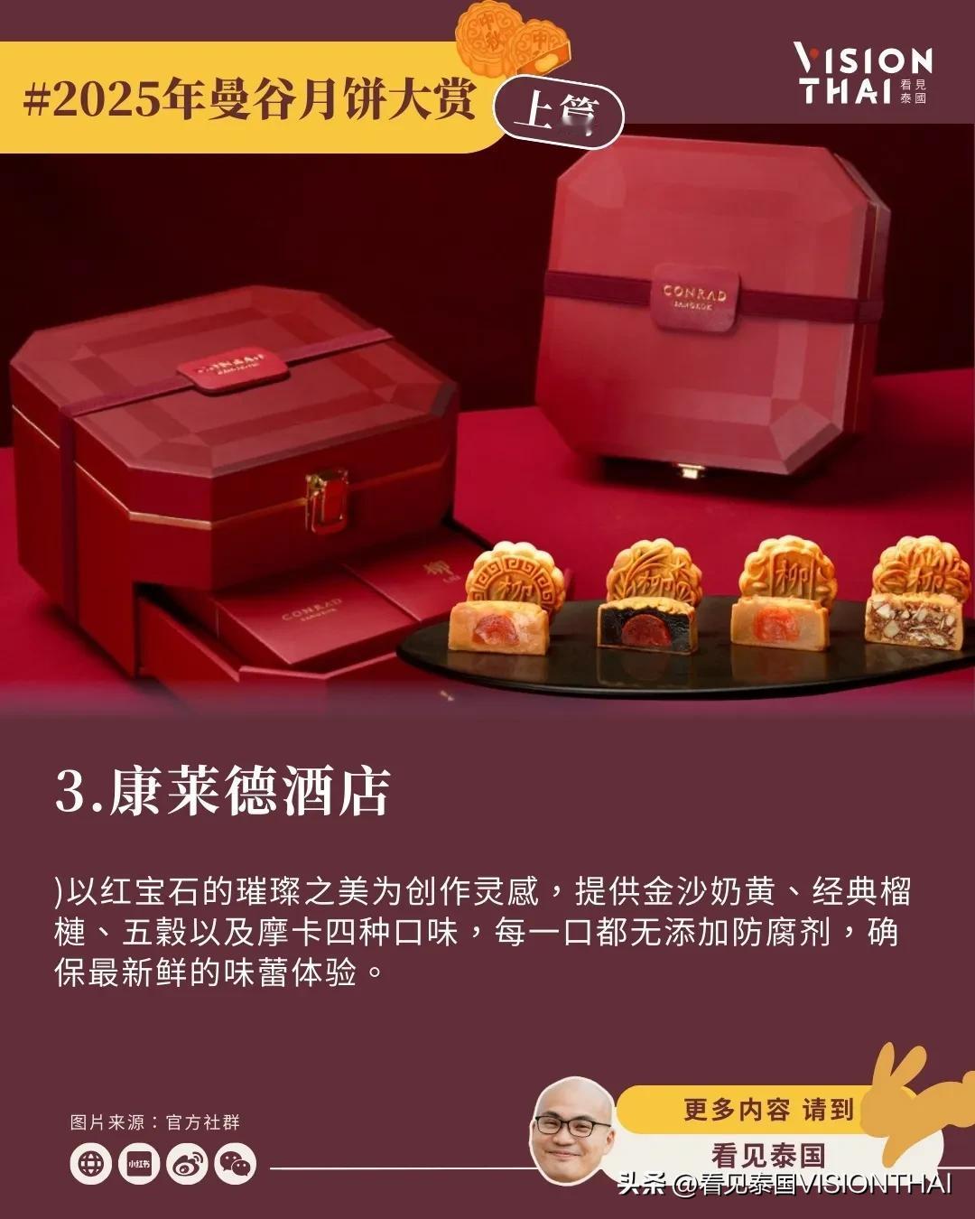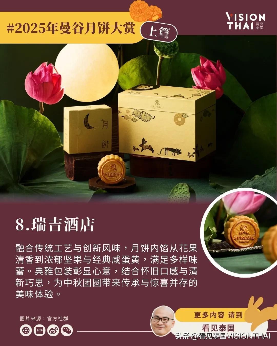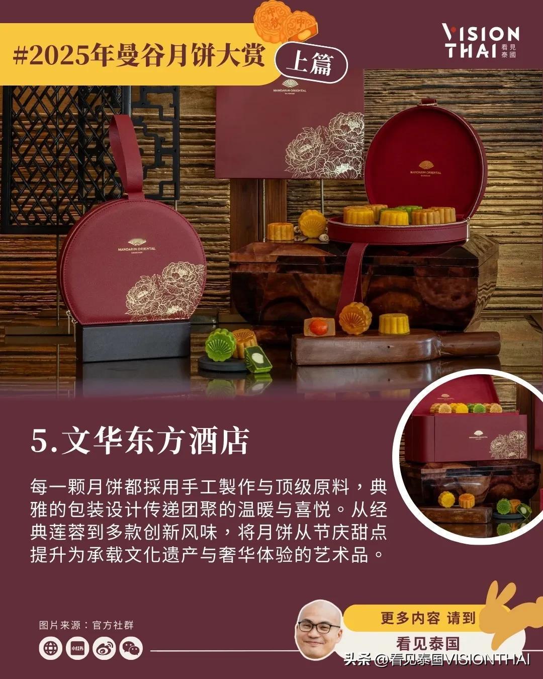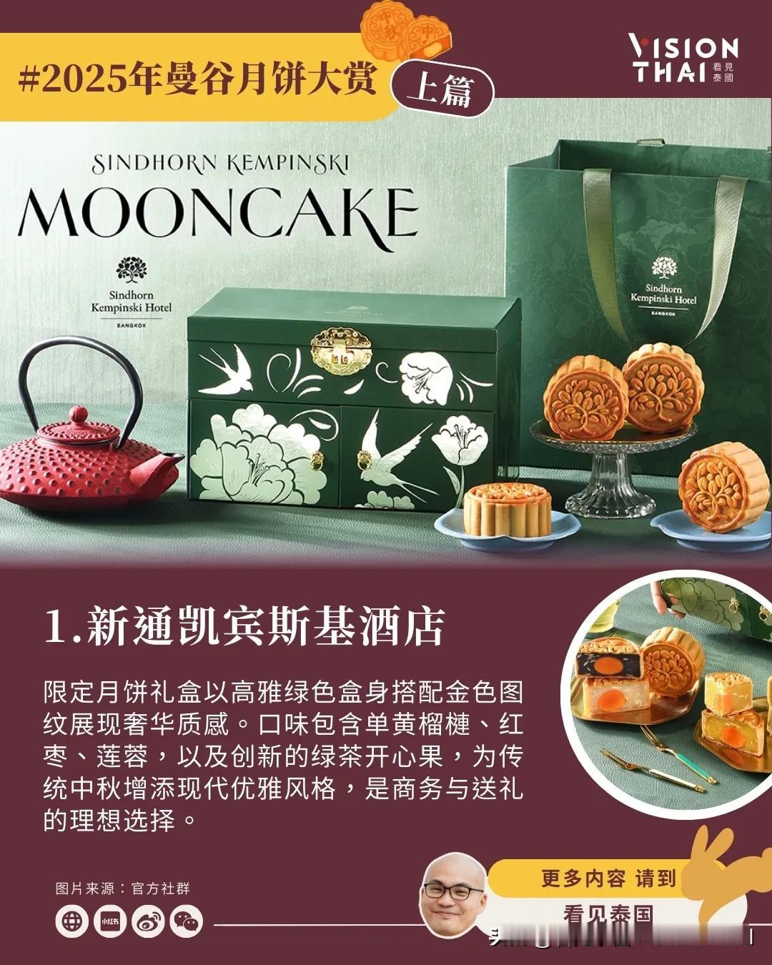 【23间曼谷酒店月饼大赏(上篇)】 泰国也过中秋节!随着中秋脚步渐近,各大曼谷酒店纷纷推出精心设计的月饼礼盒,结合传统文化与现代创意。看见泰国小编汇整了23间知名曼谷酒店推出独具特色的中秋月饼,分成上、中、下三篇为大家逐一介绍,让异乡游子品尝泰式风情的月饼。 本篇(上篇)精选8家曼谷酒店,从「新通凯宾斯基」的榴莲绿茶开心果创新组合、「金普顿玫兰」的月相主题美学、「康莱德」的红宝石灵感手工制作,到「四季酒店」的嫦娥传说包装、「文华东方」的经典奢华工艺、「半岛酒店」与艺术家联名的限量典藏版、「柏悦酒店」的蛇年泰式优雅设计,以及「瑞吉酒店」的传统创新融合。这些曼谷月饼不仅口味独特,包装设计更是各具巧思,让让你体验泰国中秋节精致的味蕾飨宴。 原文:-hans/article/2025-moon-cake-bangkok-hotel-1/ 看更多:-hans/