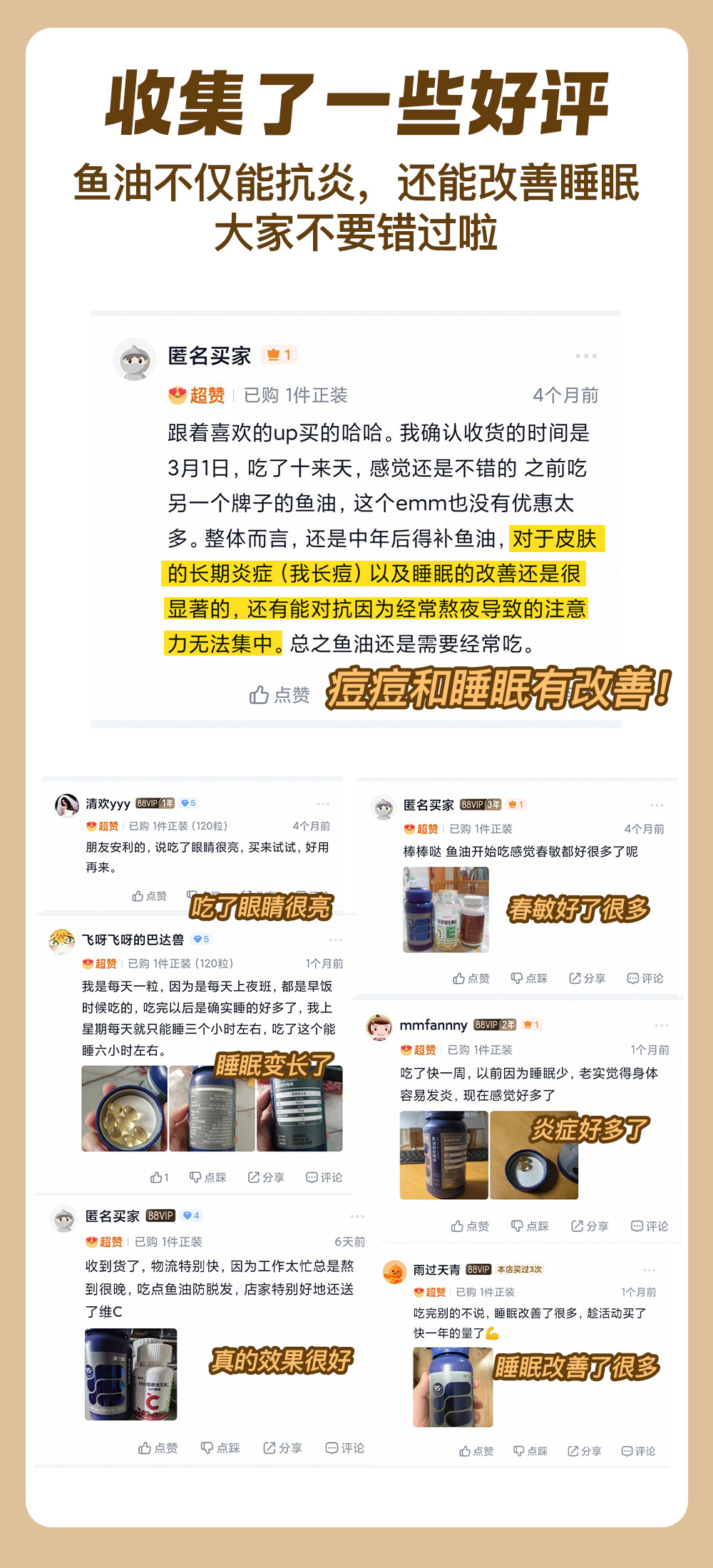 果然内调还是最基础的,可能比起涂涂抹抹会更根本一些。如果有经常熬夜、疲惫、皮肤敏感、注意力涣散的小伙伴,真的可以试试把鱼油纳入日常保养,身体内部的炎症干净了,外在的光泽感自然就来啦~