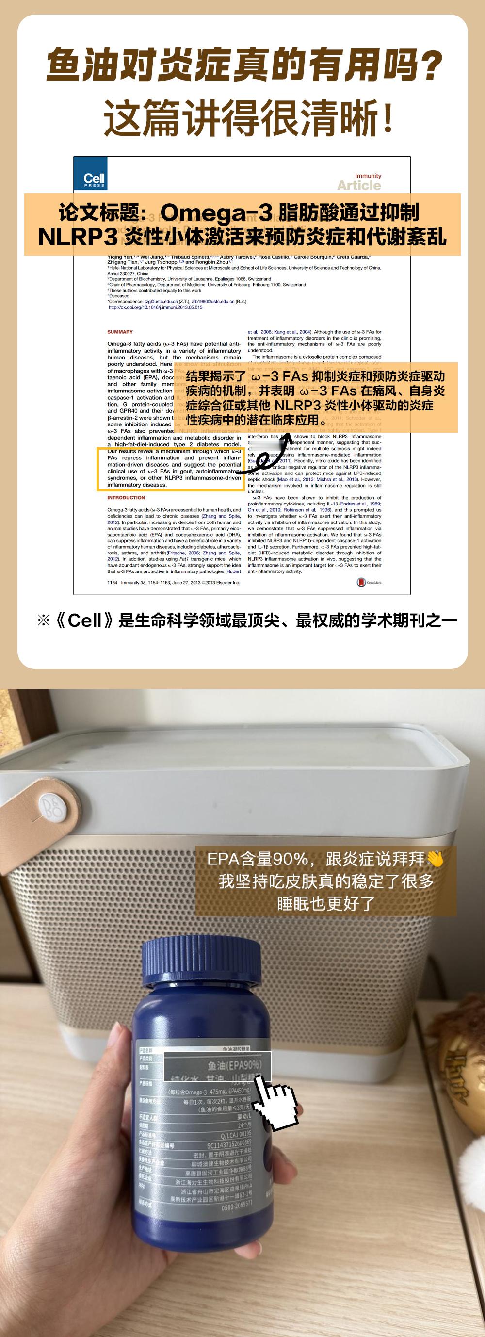 所以我很早就开始吃鱼油了,鱼油里的Omega-3是公认的天然“灭火器”,能从根源降低炎症水平。