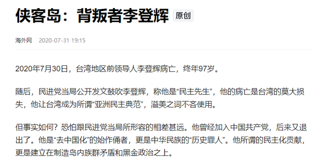 海外网————侠客岛:背叛者李登辉
