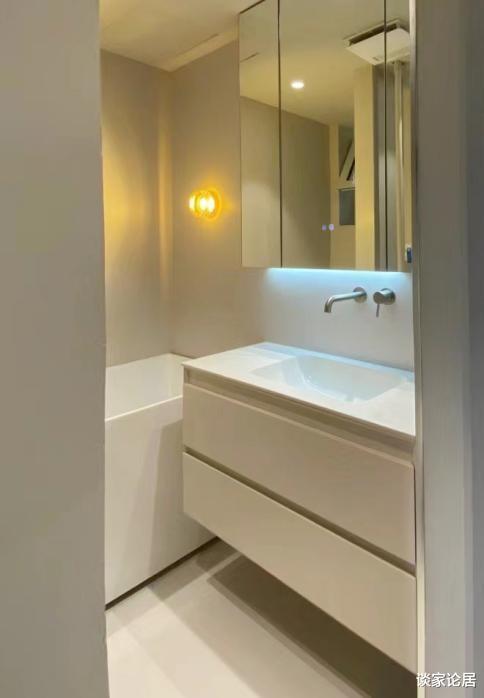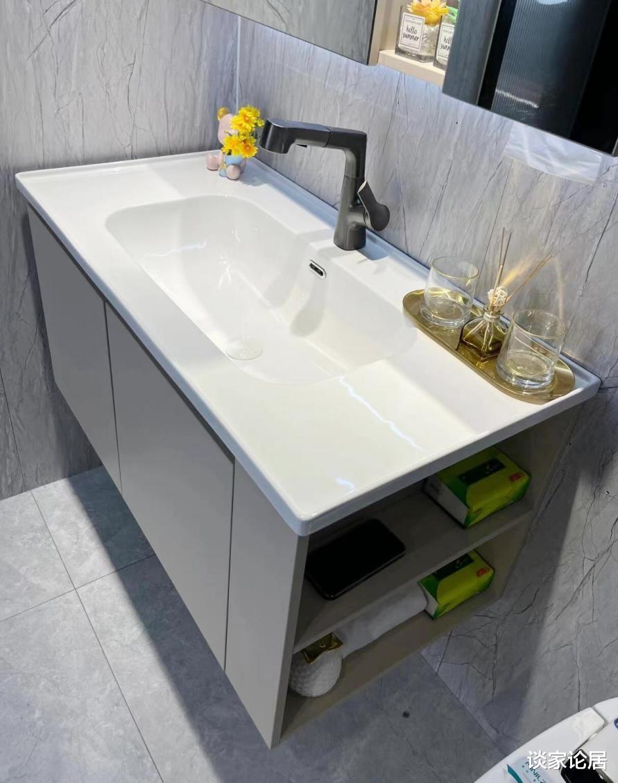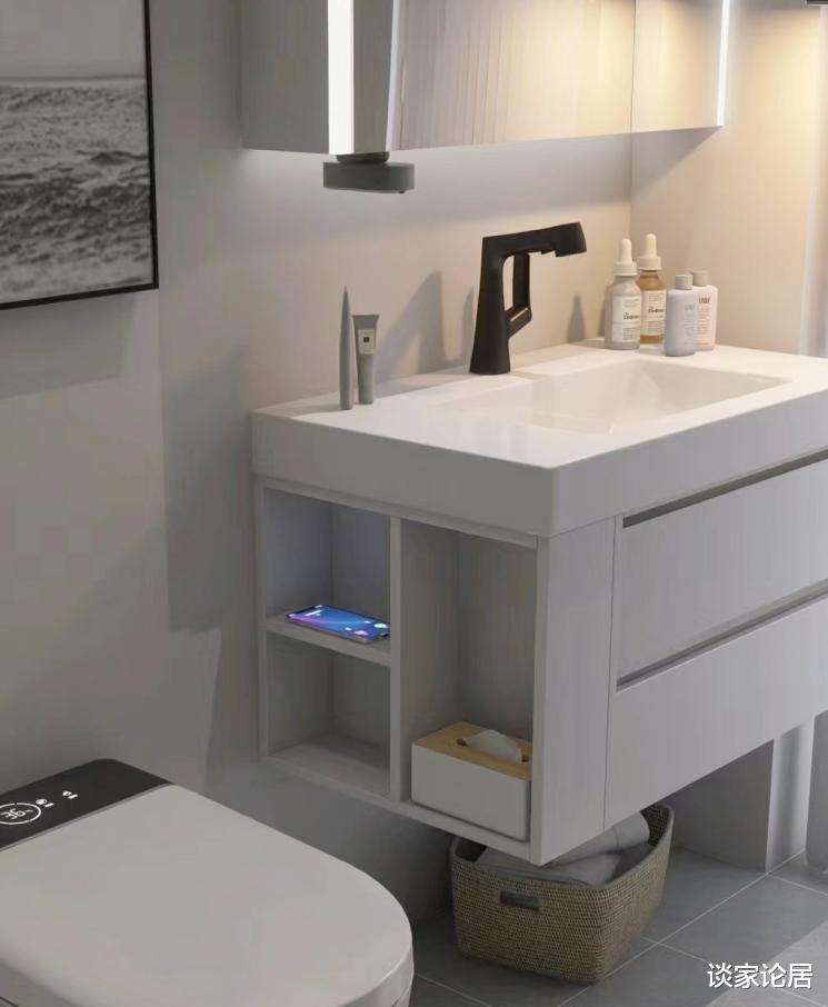 这样设计对于平时拿取东西也更为方便,不用打开柜门找来找去。同时增加了浴室柜的空间利用率,让卫生间的收纳空间增多。