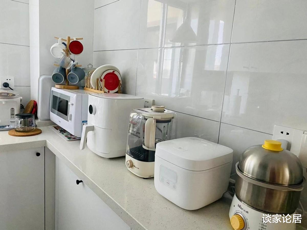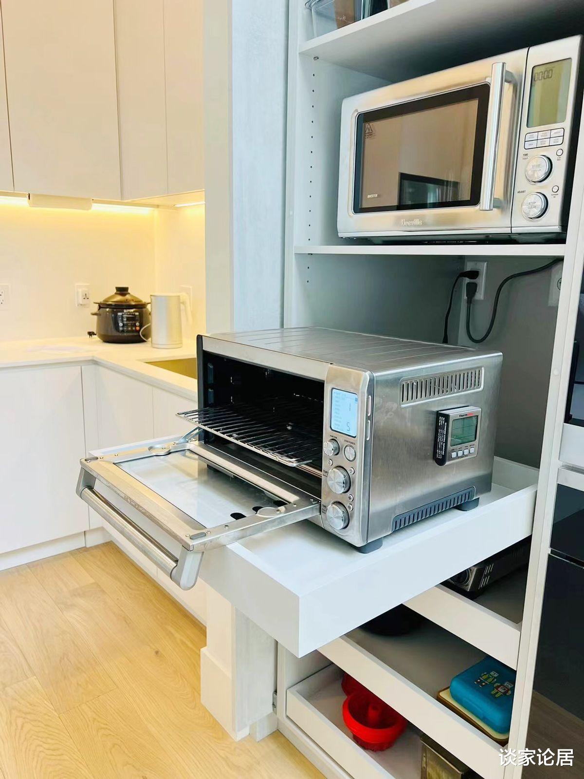 使用家电前,把层板伸出来,上下方都空着上,比橱柜台面还方便操作,用完推回去即可,而且清洁也方便得多,非常省心。