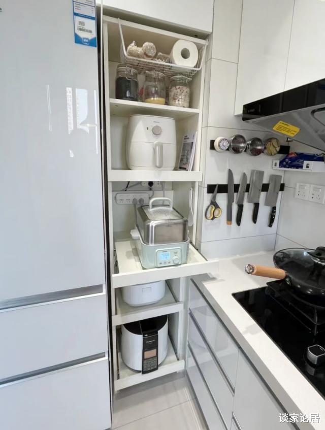 06家电柜伸缩层板为了让厨房的家电能整齐摆放,很多家庭都会设置一个家电柜,把厨房里的电器都放得整整齐齐。