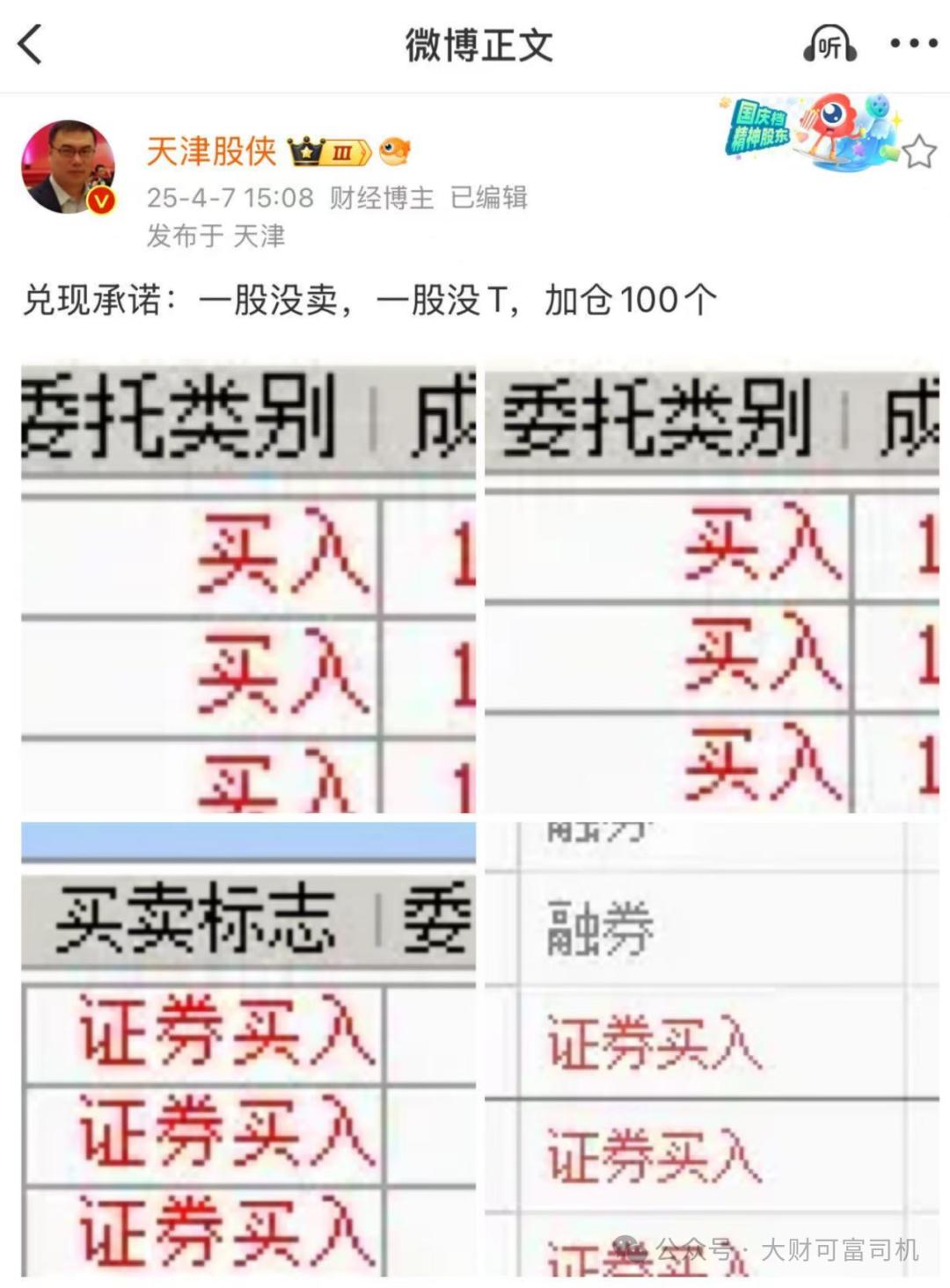 关于加仓的理由,“天津股侠”说得很朴素:“我可不想讲什么情怀,我想赚钱!”