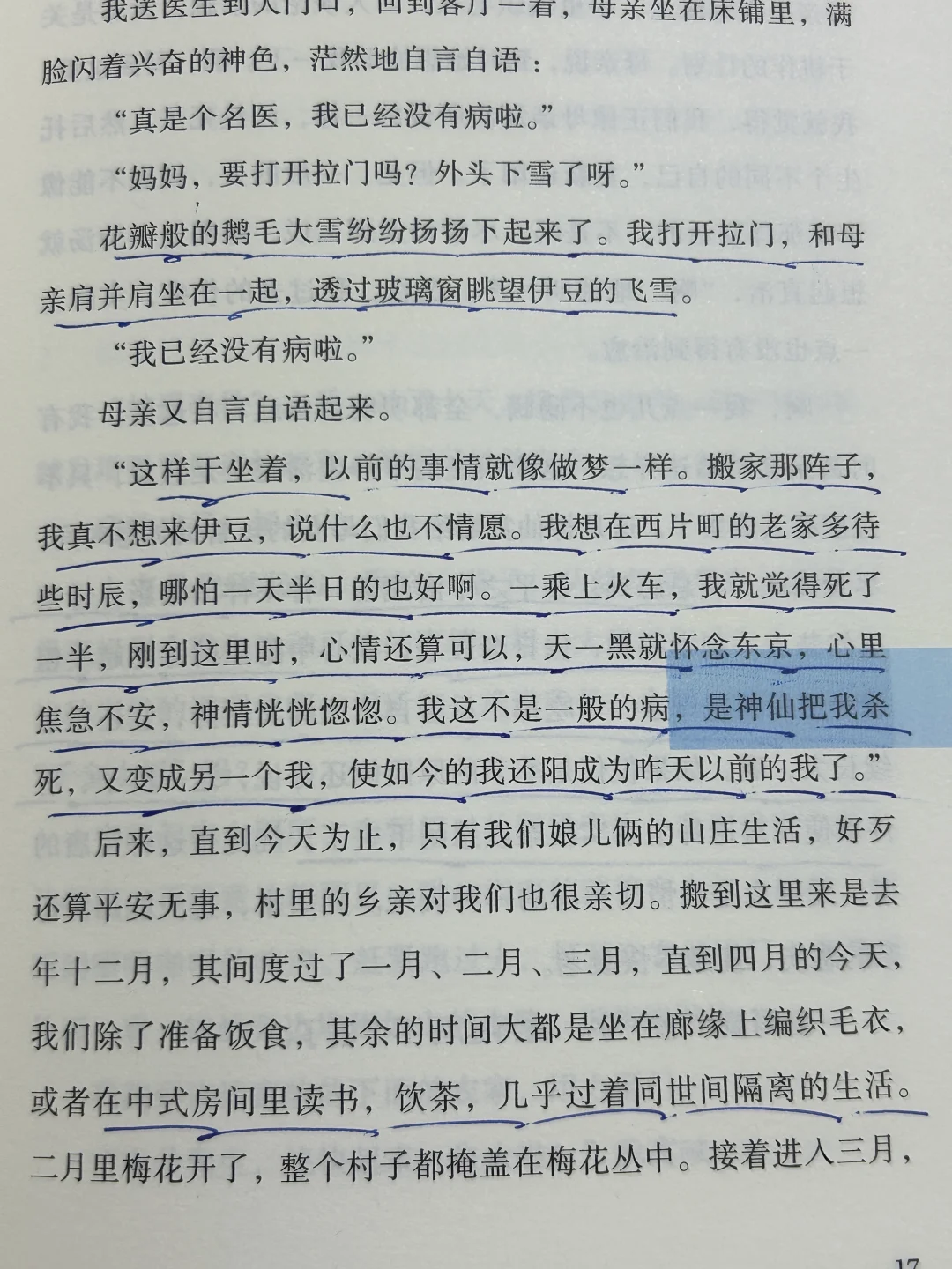 我喜欢他写母亲。她病弱,却坚持用小勺喝酱汤,怕出声失了体面;她看夕阳,说“太亮了,像烧尽的火”,一句话把时代的余烬说完。