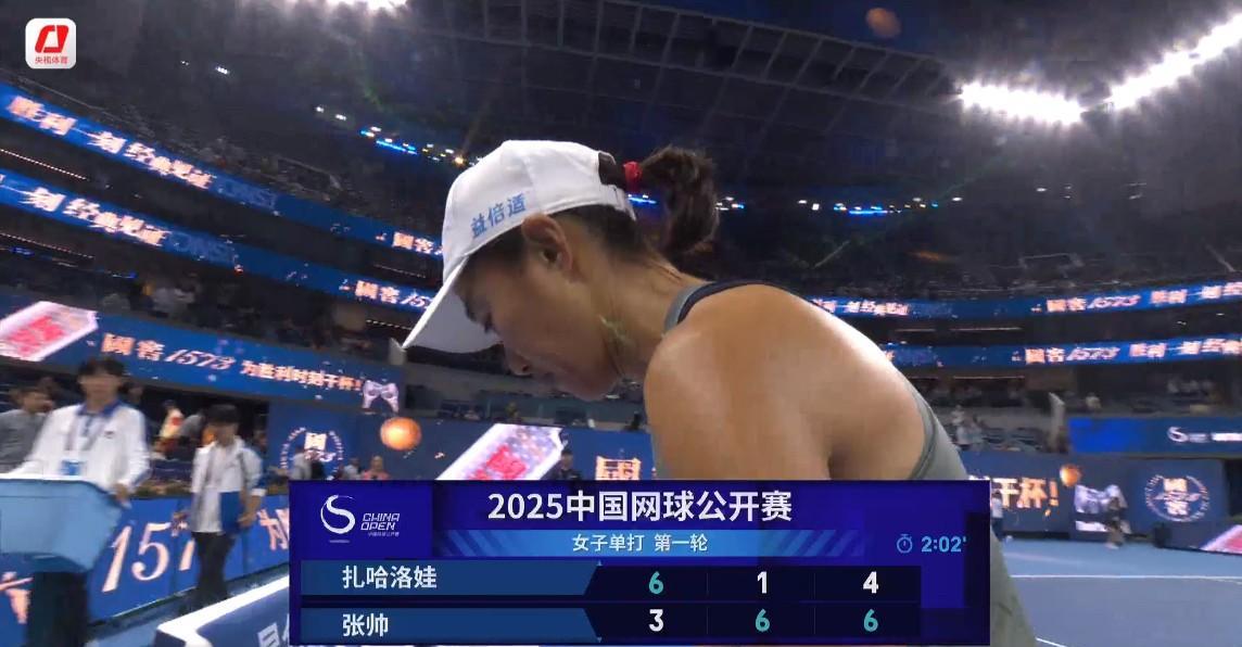 张帅以3:6、6:1、6:4战胜扎哈洛娃,晋级中网女单第二轮,恭喜张帅!