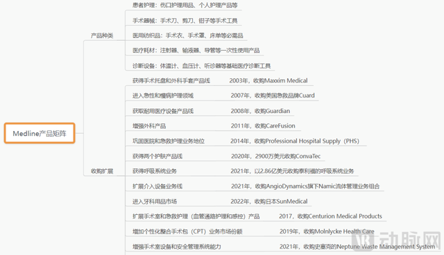 2021年,Medline被三大财团联合收购,340亿美元的收购资金让Medline得以豪横扩充产品线和建设供应链,营收和世界排名再创新高。