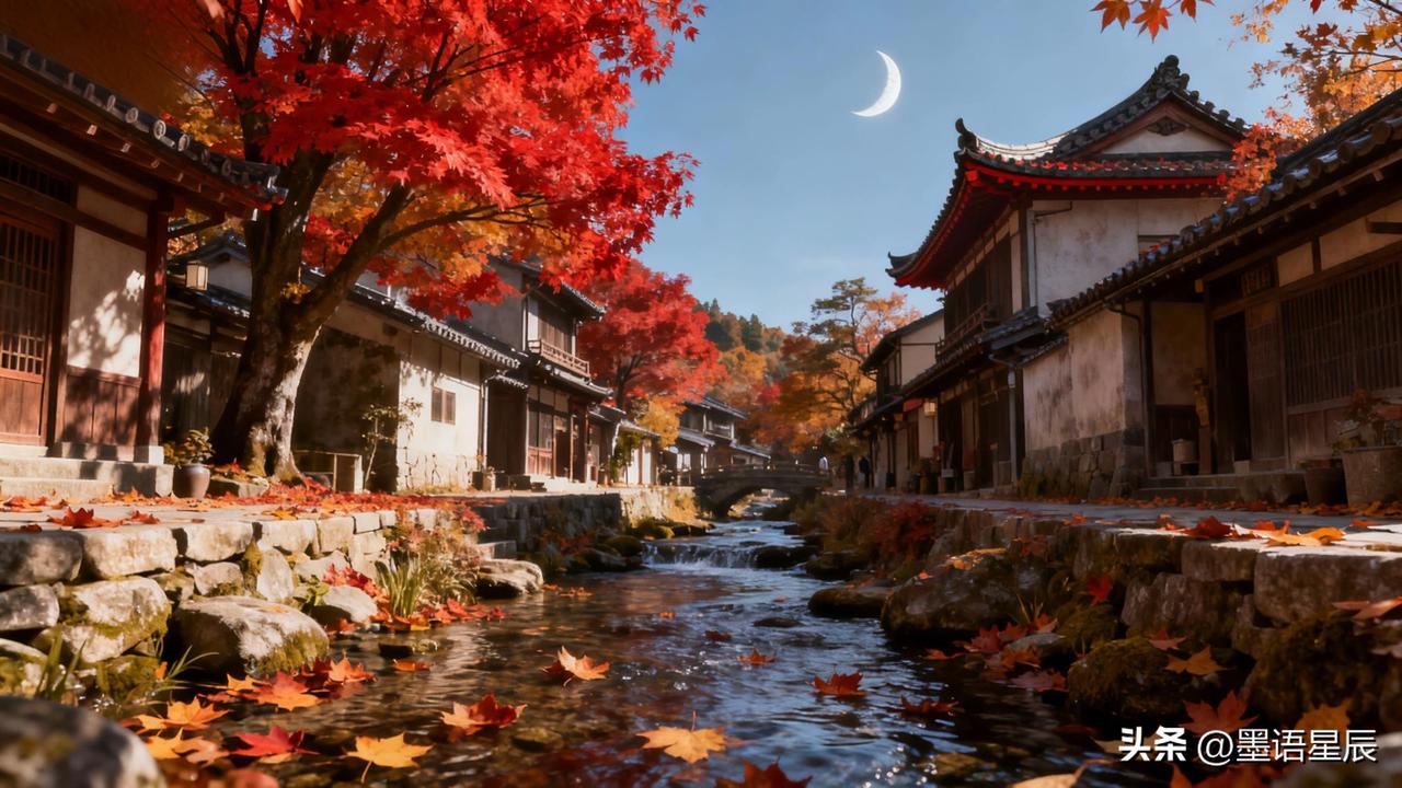 风清百里,藏着临水而居的人家;烟霞漫过尘世,铺开一卷悠悠诗行。 秋的街巷里,落叶随溪水流淌,红枫燃得像火。檐角悬着弯月,推窗见了,心里便漾起欢喜。 秋月徘徊,诉不尽别离的怅惘。曾在一篱菊影里含笑相逢,又在一盏薄酒中别绪牵肠。远山像描了黛的眉,人比黄花还瘦,才懂别离后难再重逢。 一滴陈墨,是积了千年的相思泪;一方古砚,藏着倾心相逢的痴恋。素笔邂逅美好,素笺留住光阴,植一缕牵挂,便能抵过岁月漫长。 不负岁月,不负你。在往昔的惦念里,等一场花开的希冀。 裁一段秋景,候一人归来,愿山河无恙,尘世皆安。
