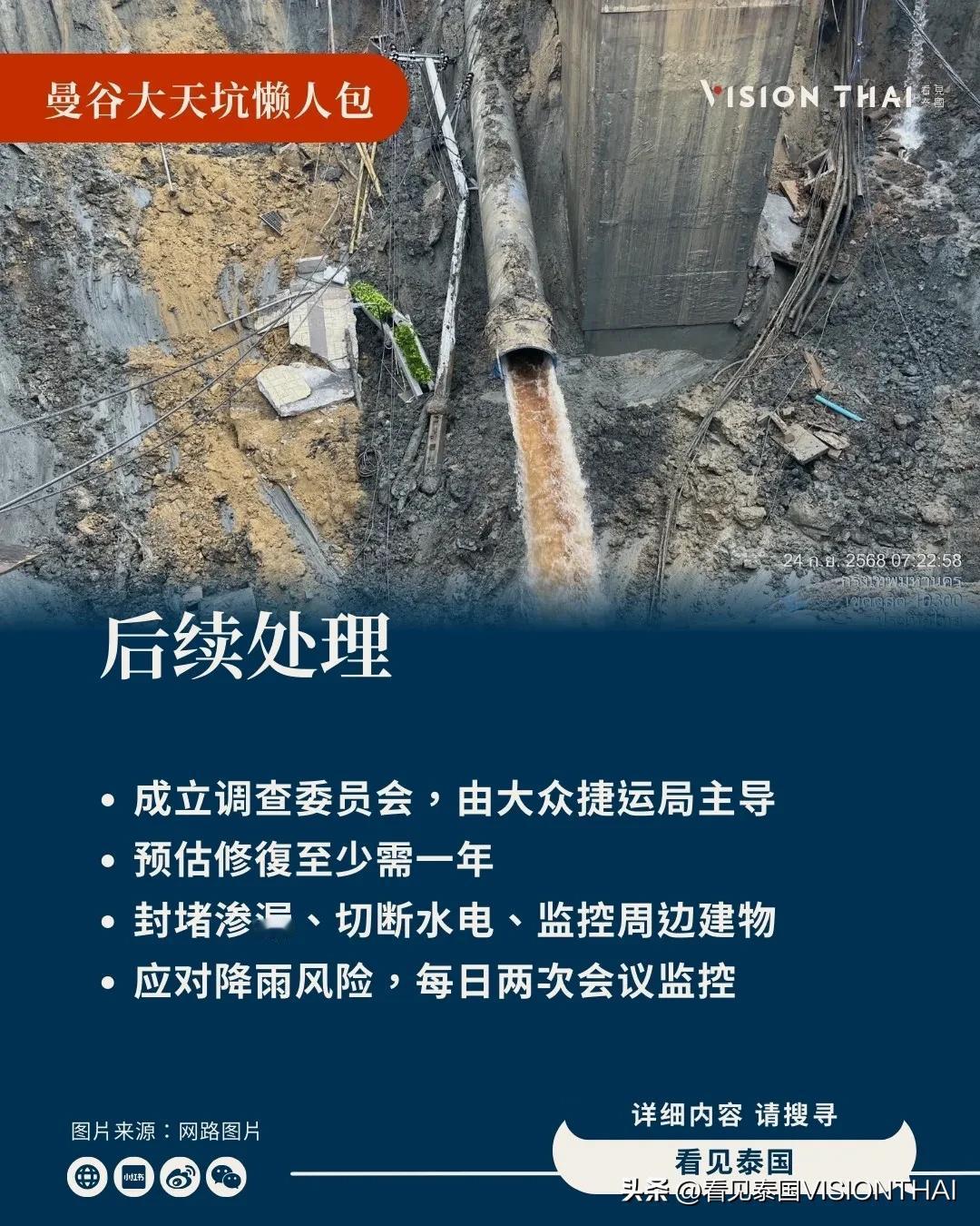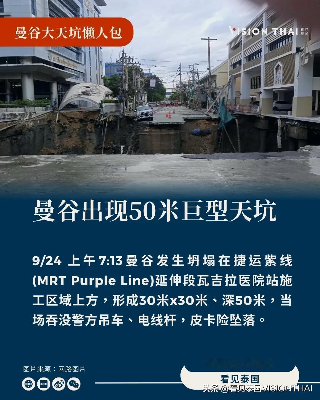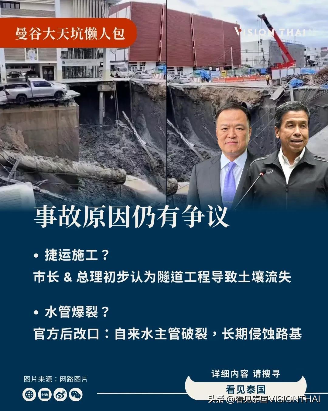 【曼谷大天坑事件始末 施工酿祸揭安全隐忧】 昨(24)日上午7时13分,曼谷三森路(Samsen Road)瓦吉拉医院(Vajira Hospital)前方发生严重道路坍塌,瞬间形成30米x30米、深达50米的巨大天坑。这起规模极端的地陷事故吞没了警方吊车、电线杆等设备,迫使当局紧急疏散3500人并暂停医院门诊服务,所幸未造成人员伤亡。事故原因仍有争议,可能与地铁施工或自来水管爆裂有关。 坍塌发生在地铁紫线(MRT Purple Line)延伸段瓦吉拉医院站施工区域上方,现场传出巨大轰隆声后,2根电线杆瞬间掉入坑洞并冒出火花,一辆警方吊车随之坠落。另有一辆皮卡车险些坠入天坑,车上人员惊险脱险。破裂的主要水管让水不断涌入坑洞,进一步加剧土石滑落。 上午8时30分曼谷市长查猜(Chadchart Sittipunt)率队抵达现场督导应变。由于地基持续下沉滑动,当局监控周围100米范围内状况,直到中午才成功阻止地面继续下陷。 事故造成广泛影响,当局紧急疏散约3500人,主要包括瓦吉拉医院住院病患和周边居民。医院暂停门诊和急诊服务两天,住院服务维持运作,曼谷市政府其他医院代为提供门诊服务。 最令人扰忧的是五层楼三森警察局(Samsen Police Station)安全受威胁,塌陷已损害该建筑部分地基桩,情况危险。相较之下,瓦吉拉医院因有地下基础牆保护较为安全。瓦吉拉医院路口至Sanghi路口全线封闭,造成严重交通堵塞。 事故原因出现不同说法。曼谷市长查猜和总理阿努廷(Anutin Charnvirakul)最初指向捷运施工问题,认为隧道与车站接缝破损,导致上方泥土流入地下空隙。阿努廷表示,地下铁施工的土方正在滑动。 然而官方脸书随后改口,确认是地下自来水主管爆裂,洪水长时间侵蚀路基结构导致坍塌。泰国农业大学渔业学院副院长托恩(Thon)分析指出,曼谷地层非石灰岩质,不会自然地陷,此次天坑规模极端,比许多国际案例还严重,呼吁全面检查其他潜在风险区域。 总理阿努廷承诺成立由大众地铁局主导的调查委员会彻查原因。身为工程师的他坦言,肯定有错误发生,必须找出工程问题根源,修复工程预计需要至少一年时间。 当局已实施多项紧急措施,封堵隧道渗漏、评估周边建筑安全、监控土壤移动、切断该区域水电供应。考量降雨可能加剧土壤流失,已成立专责小组应对气候风险。曼谷市政府每日召开两次会议监控情况,事故确切原因仍待进一步调查。 原文:-hans/article/bangkok-vajira-hospital-sinkhole-complete-record/ 看更多:-hans/