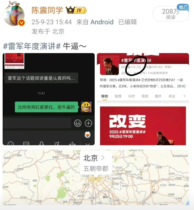 陈震:雷军比所有网红都更红,这就是我想表达的,字面意思而已,不必过度解读! 雷军确实是最火的,虽然有很多人吐槽雷总,但是实际见面的时候,那肯定要来一张合影或者要一张签名之类的。 有的人他自己都不用小米的产品,他还吐槽小米公司也不知道是怎么想的,小米又没招你惹你。 大家是怎么看的?欢迎评论区留言。
