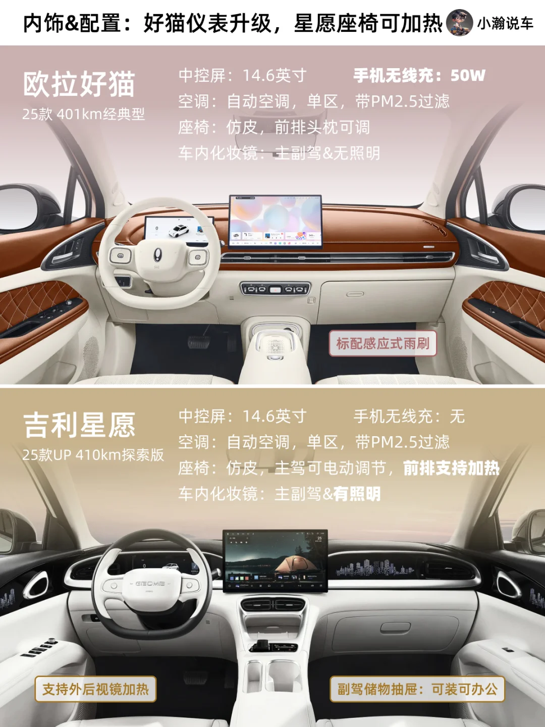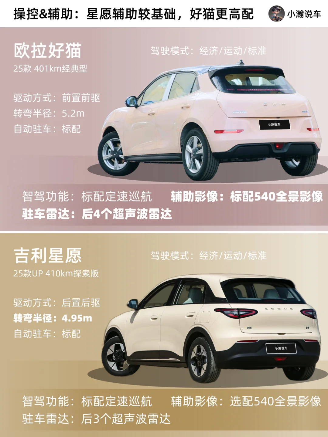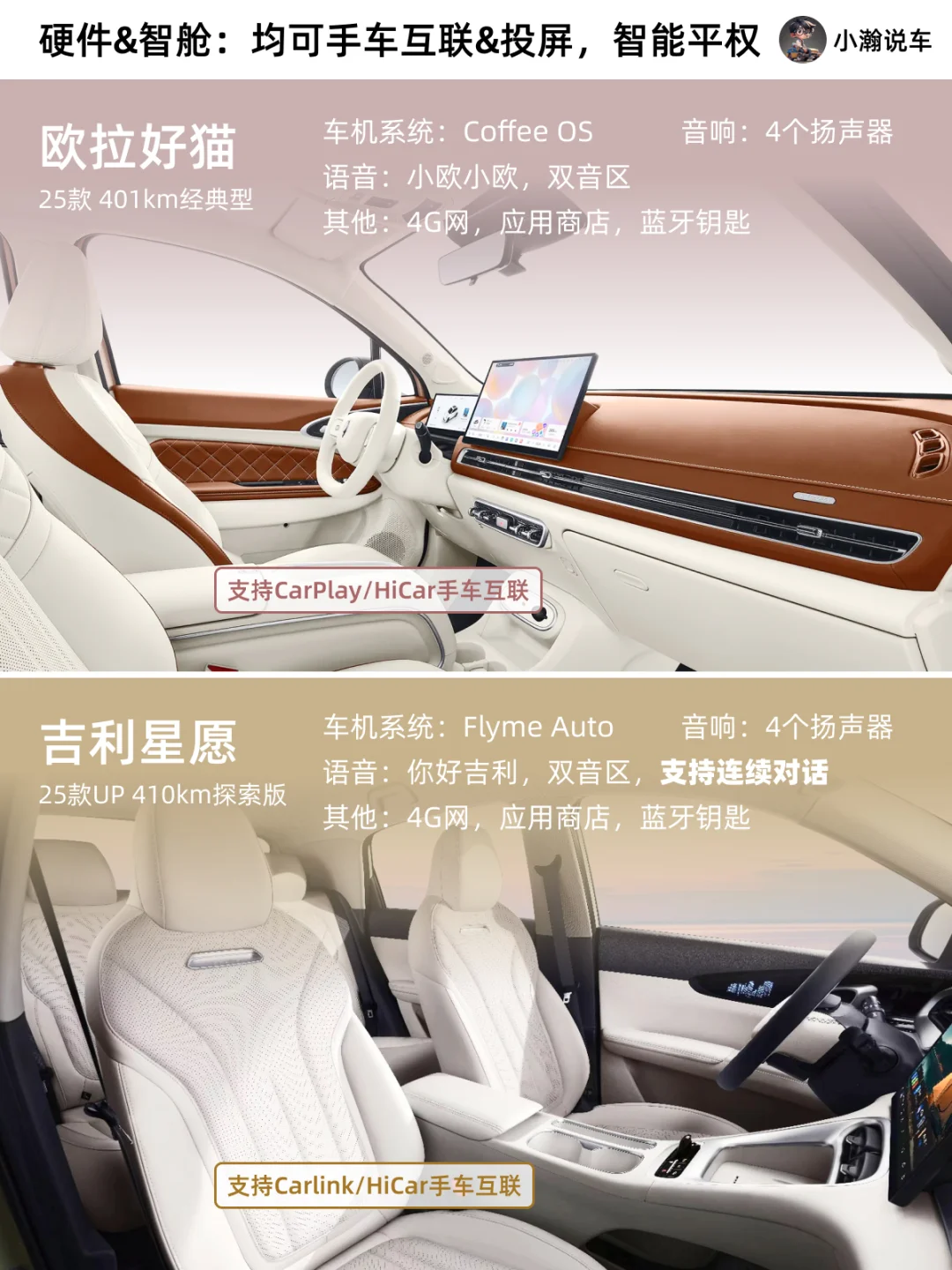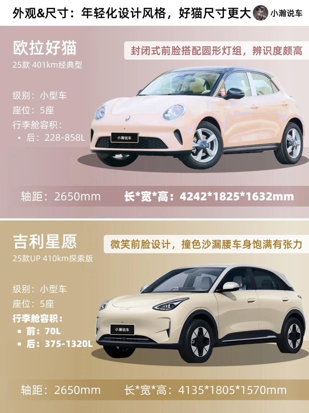 欧拉好猫这台小车,一直以流线复古的外形深受小姐姐们喜爱,如今新款车型售价下调,内饰改款,可以说是进行了全方面的进阶!那么相比于目前吉利的爆款星愿,你会选哪一台小车车呢?